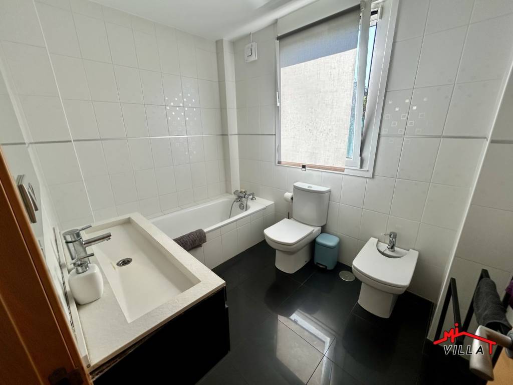 La planta principal dispone de una habitación con armario empotrado, amplio salón-comedor, cocina independiente completamente equipada, despensa, baño completo con bañera y ventana exterior y acceso directo al garaje de 25m2.