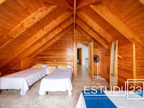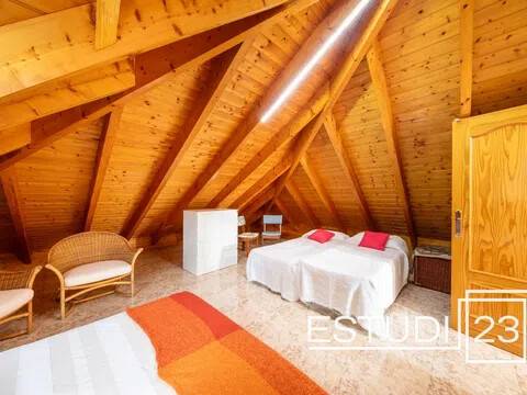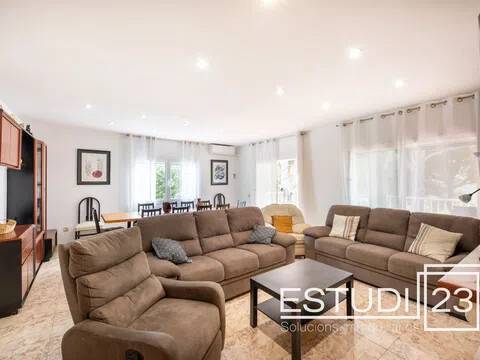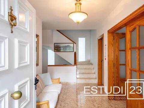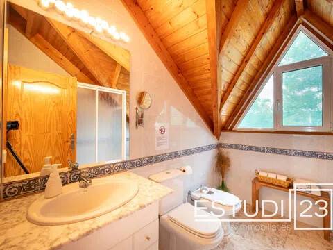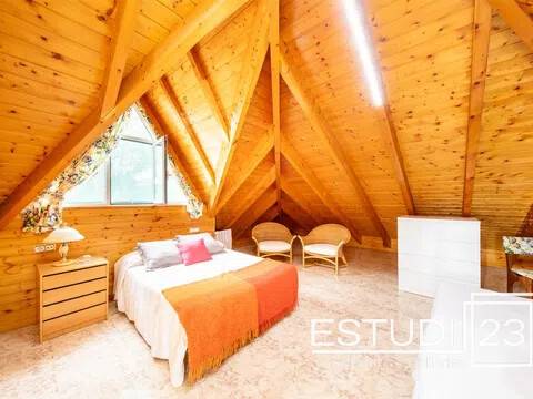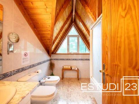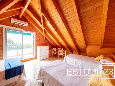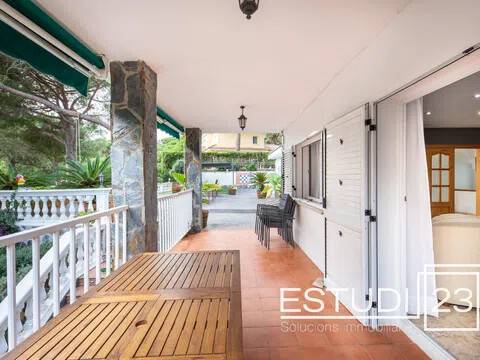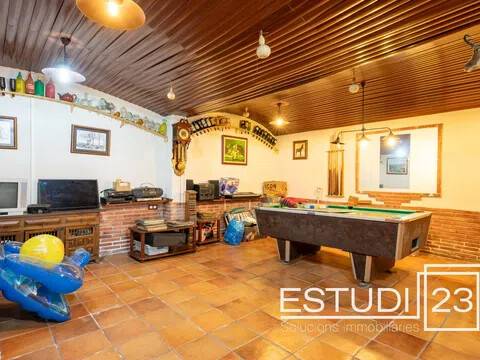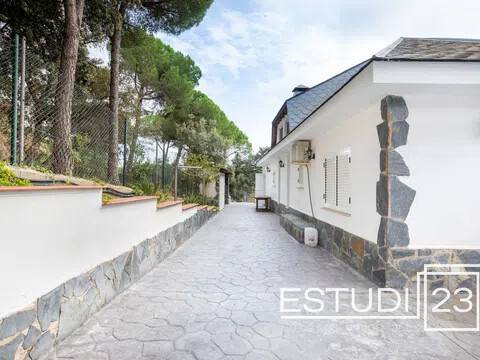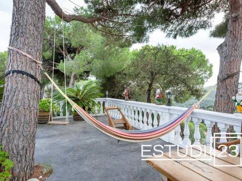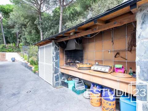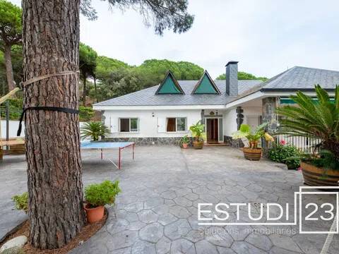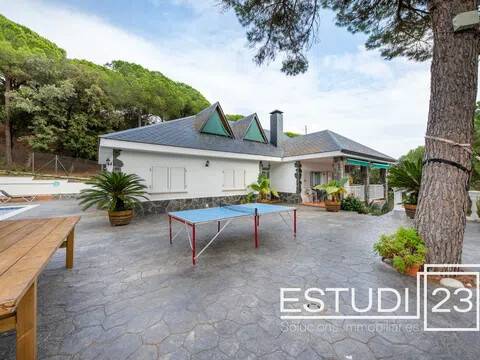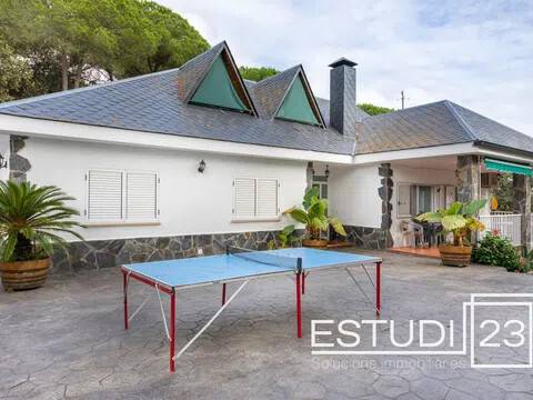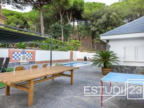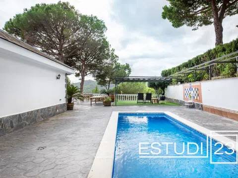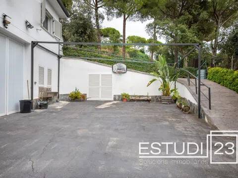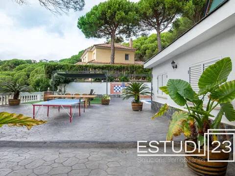 MAGNIFICA CASA CON PISCINA RODEADA DE NATURALEZA Estudi 23 presenta encantadora casa estilo mediterráneo rodeada de naturaleza que se encuentra en urbanización Tres Turons a 6 minutos de Sant Vicenç de Montalt, la misma carretera que va hacia Arenys de Munt. Es una urbanización muy tranquila y familiar perfecta para vivir todo el año a tan solo 8 minutos de la autopista c32. DISPONE DE LICENCIA TURÍSTICA! En parcela de 1233m2 encontramos casa con 242m2 construida en el año 1999. DISPONE DE LICENCIA TURÍSTICA! La vivienda se distribuye en 3 plantas de la siguiente manera; Desde la calle accedemos por una rampa con cierto desnivel apta para vehículos que nos conduce a la vivienda. La PLANTA PRINCIPAL cuenta con un amplio recibidor y un luminoso salón comedor con salida a un magnífico porche. Una cocina office con salida a la zona de barbacoa. Además esta planta cuenta con 3 habitaciones dobles y un gran baño completo. Acceso al garaje. En PLANTA SUPERIOR encontramos una acogedora buhardilla con techos de madera donde se encuentran 2 amplias habitaciones con salida a terraza con vistas a montaña y dónde se divisa entre árboles el mar, además cuenta con un baño completo. En la planta -1 encontramos el garaje para 2 vehículos, y espacio para aparcar más vehículos en la misma finca. además de una sala polivalente muy acogedora tipo bodega con chimenea. Además de una sala de máquinas y herramientas. En el EXTERIOR se encuentra una piscina de 3x7 de agua salina, zona de barbacoa y jardín con distintos espacios para descansar y disfrutar de la naturaleza de los alrededores. Con a comodidad de tener todo el suelo pavimentado con hormigón impreso. CARACTERÍSTICAS Año construcción 1999 Parcela 1233m2 Casa 242m2 Piscina privada Jardín Terraza 2 Balcones 5 Habitaciones dobles 3 baños completos Sala polivalente Aire Acondicionado Calefacción con radiadores eléctricos Ventanas doble cristal Suelos cerámicos Fibra óptica Riego automático Preinstalación para poner placas solares Fosa séptica Urbanización no recepcionada, cuota mensual comunitaria 56€ Contáctenos sin compromiso si desea ampliar información o realizar una visita y consulte en nuestra web otras propiedades parecidas.