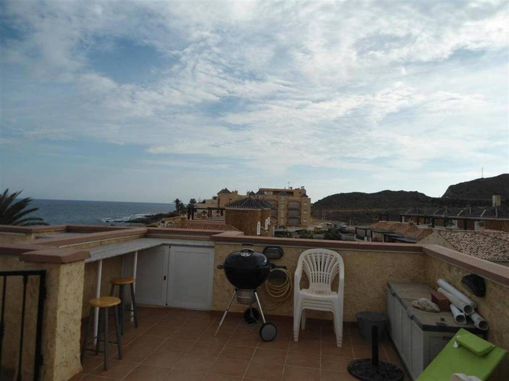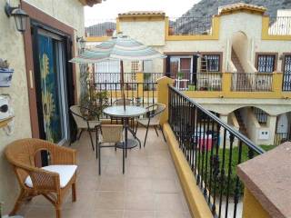 Brillante y luminoso ático haciendo esquina de dos habitaciones, está a pocos minutos de la playa. Totalmente climatizado, amueblado y equipado, un dormitorio tiene una cama doble con armarios empotrados, el otro tiene dos camas individuales. Hay un gran baño con bañera . Cocina está totalmente equipada, electrodomésticos, lavadora... Un amplio salón comedor con muebles modernos, un gran sofá cama, una gran mesa con 4 sillas, televisión española. A través de la cristalera grande del salón se llega al gran balcón en el que hay una mesa y 4 sillas para cenar al aire libre. Arriba, en el solárium de la azotea, tiene tumbonas y vistas al mar, ambas zonas son ideales para comer al aire libre y relajarse bajo el sol. La propiedad está en el primer piso, también tiene acceso a la hermosa piscina.