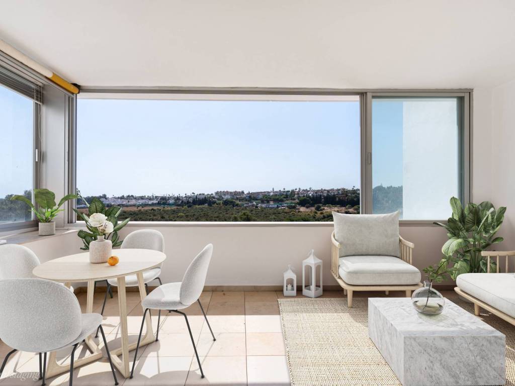 Bright and spacious apartment with panoramic views, including partial sea views and beautiful mountain scenery overlooking the golf course and across the orange groves, gently bordered by the river . Located in a very well-maintained gated community in Guadalmina Alta, this property offers an unbeatable combination of tranquility and convenience — close to amenities, golf, and the beach.