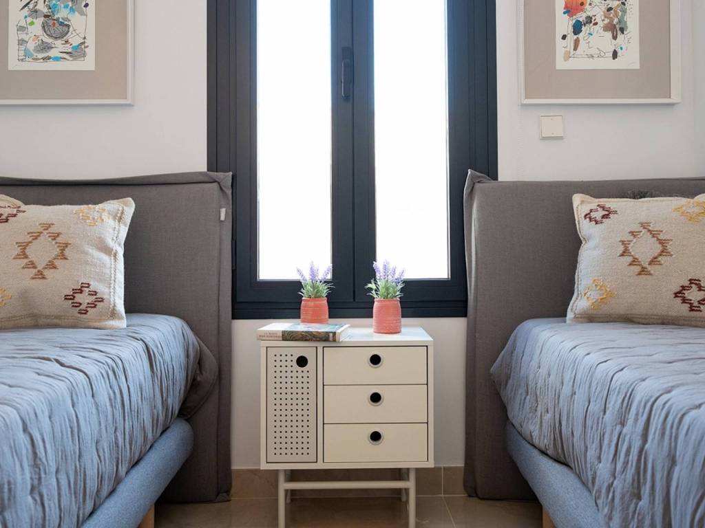 This phase comprises a total of 24 modern homes, distributed into 16 terraced and 8 semi-detached villas, all designed to make the most of the available space. The homes are spread over two floors and feature 3 bedrooms with built-in wardrobes, offering practical and stylish storage solutions. The modern and spacious kitchen is fully equipped with high-quality appliances, including a ceramic hob, oven, extractor hood, dishwasher, and refrigerator. Additionally, each home comes with two air conditioning systems, one per floor, ensuring maximum comfort throughout the year.