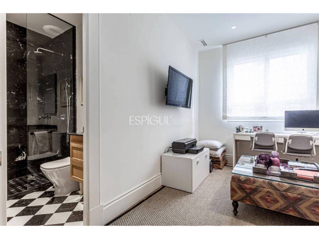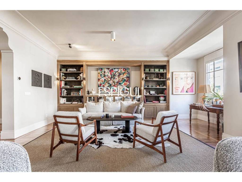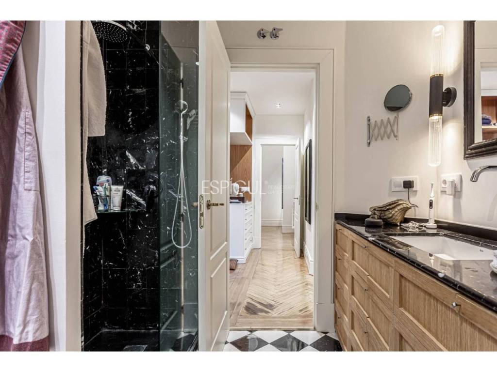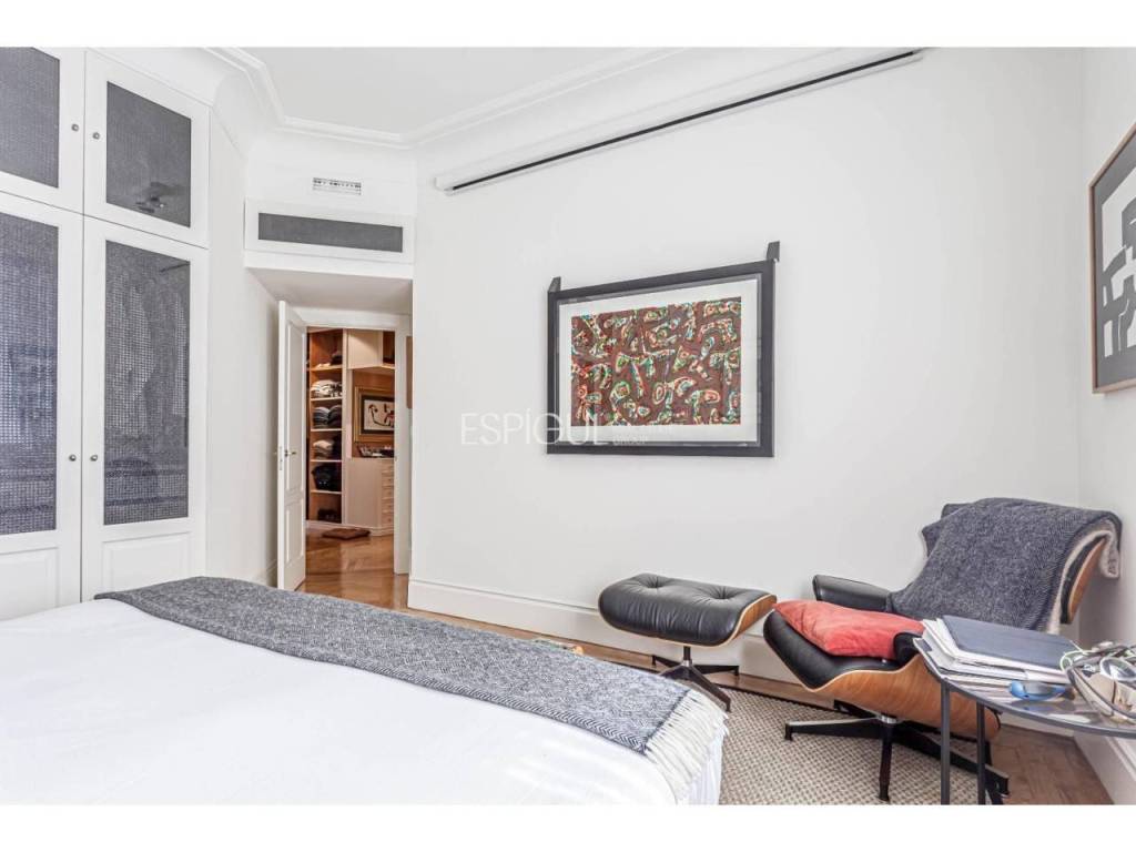Totalmente reformada con materiales de la más alta calidad por un reconocido interiorista, esta propiedad destaca por su elegancia atemporal, su amplitud y la abundante luz natural que inunda cada estancia. El proyecto de interiorismo ha sabido combinar el clasicismo propio de la finca con un diseño contemporáneo, logrando espacios funcionales, acogedores y sofisticados.