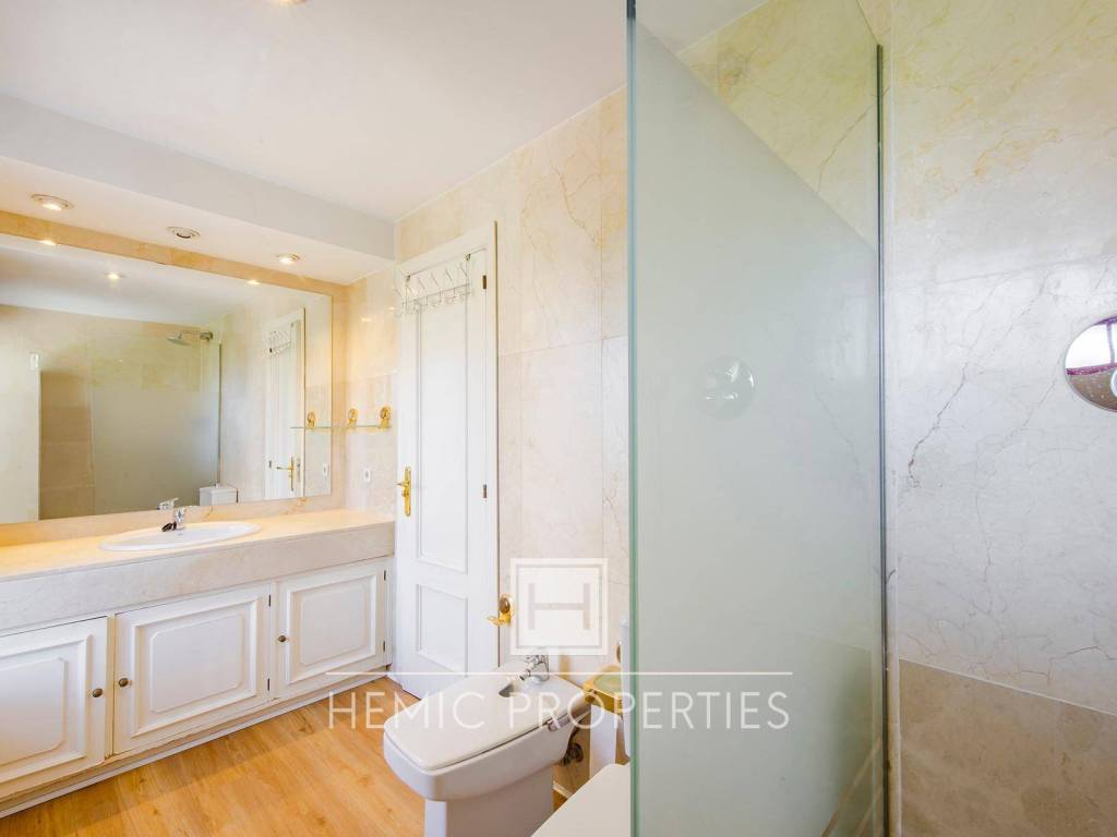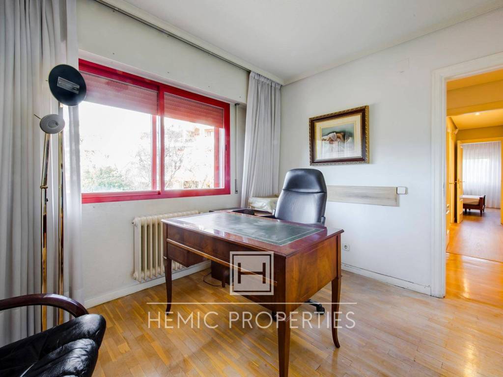 Hemic Properties comercializa en exclusiva esta fantástica vivienda ubicada en una de las urbanizaciones privadas más cuidadas y seguras de Prado de Somosaguas, en Pozuelo de Alarcón. Un entorno que combina tranquilidad, naturaleza y servicios de primer nivel, pensado para quienes buscan elevar su calidad de vida.Desde el primer momento, la propiedad transmite amplitud y potencial. Con 309 m2 construidos y una superficie útil cercana a los 200 m2, esta vivienda ofrece un formato difícil de encontrar hoy en día: dos plazas de garaje amplias, un trastero excepcional de unos 30 m2, y una distribución que se adapta con facilidad a las necesidades de cualquier familia.Al cruzar la puerta, nos recibe un hall que da paso a un salón-comedor luminoso con acceso directo a una terraza de unos 12 m2, perfecta para relajarse con vistas a la urbanización. La vivienda incorpora además un despacho que también puede convertirse en dormitorio, otros tres dormitorios de muy buen tamaño, tres baños completos, un aseo de cortesía y una cocina enorme de más de 25 m2, con espacio de sobra para un comedor de diario. Un verdadero corazón del hogar.La vivienda es totalmente exterior, hace esquina y cuenta con una luz y privacidad que marcan la diferencia con respecto al resto del complejo. Dispone de calefacción individual por gas natural, un plus tanto en eficiencia como en control del consumo.La urbanización es uno de los grandes atractivos del conjunto. Sus jardines, cuidados al milímetro, se complementan con una piscina de tamaño olímpico, zona infantil con columpios, una pista de tenis y dos pistas de pádel, donde poder jugar con iluminación hasta las 23:00h, y un sistema de seguridad privada activa las 24 horas del día, 365 días al año.Los gastos de comunidad rondan los 300 mensuales y el IBI supone 950 al año, cifras muy equilibradas para un residencial de este nivel.Si hay algo que realmente nos enamora de esta vivienda es su versatilidad. La distribución actual funciona muy bien, pero permite crear espacios todavía más amplios, integrar zonas, abrir ambientes y personalizar cada rincón. Es una oportunidad real para quien quiera proyectar un hogar a medida sin renunciar a una base arquitectónica sólida y bien pensada.Respecto al entorno, Prado de Somosaguas es uno de los grandes referentes residenciales de Madrid. Colegios como el British Council School, Instituto Veritas o Retamar, el Hospital Universitario Quirón a menos de cinco minutos, los centros comerciales Somosaguas y La Finca Gran Café, parques, zonas verdes, espacios para mascotas y el prestigioso Golf La Finca con 18 hoyos, convierten esta ubicación en una de las más completas y demandadas del noroeste. Todo ello a muy poca distancia del centro de la capital.En definitiva, estamos ante una vivienda diseñada para familias que aspiran a más, que buscan un hogar donde cada día se viva con calma, comodidad y calidad, pero principalmente un entorno completamente seguro que garantice tu tranquilidad a la hora de que vuestros hijos puedan jugar ampliamente con los demás niños. Es una propiedad que no solo cumple, sino que supera expectativas y que encaja a la perfección con quien desea un entorno seguro, exclusivo y realmente especial.
