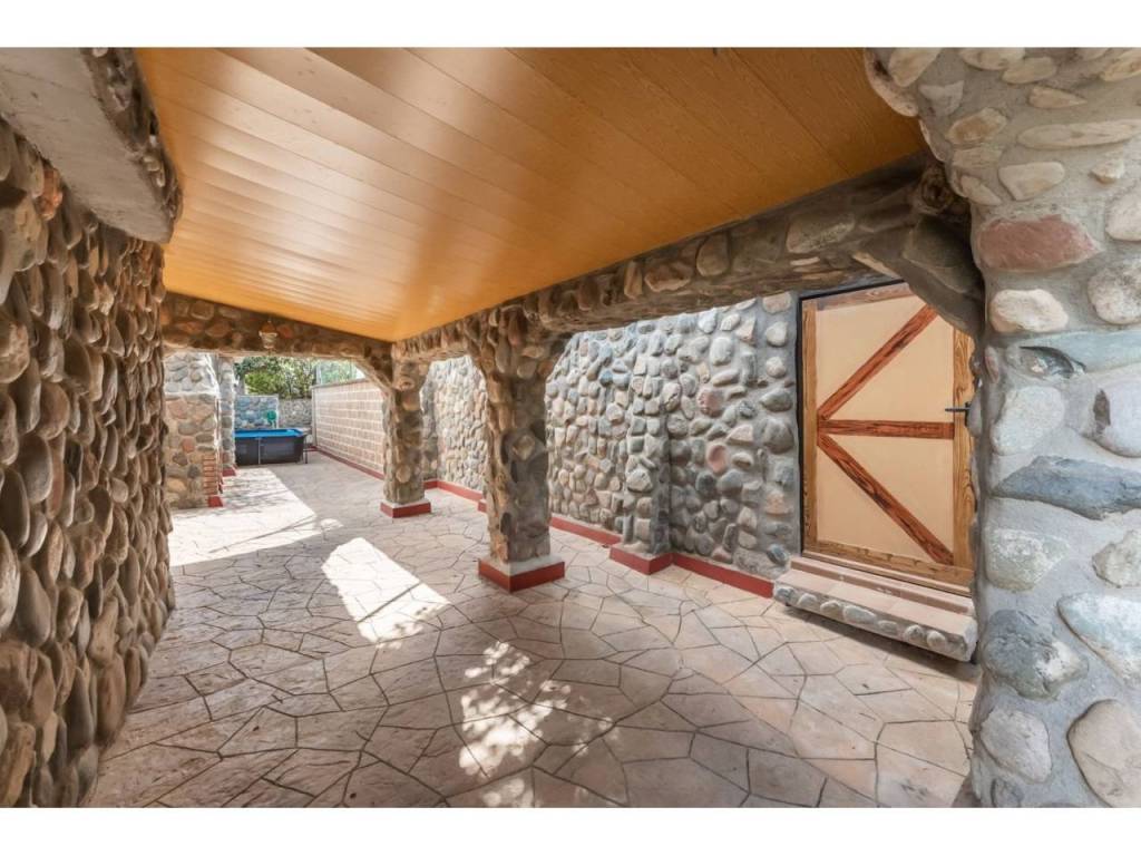 It consists of 3 double bedrooms (one with a built-in wardrobe), a dressing room, dining room with fireplace and access to a 15m2 solarium terrace, two complete exterior bathrooms (one with shower and the other with bathtub), a dining room and an outdoor summer kitchen on a 50m2 terrace, a large outdoor pool, a cellar, a storage room, an 80m2 garage, another 100m2 terrace, a space for 15m2 tools and a chicken coop.