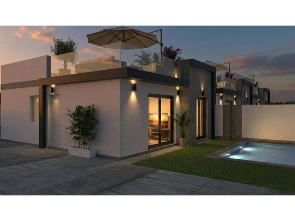 Located just 18 km from Los Alcázares beach (about a 17-minute drive). The villa offers 3 bedrooms, 2 bathrooms, 90.16 m2 built area, on a 193.41 m2 plot, including a private parking space of 15 m2.