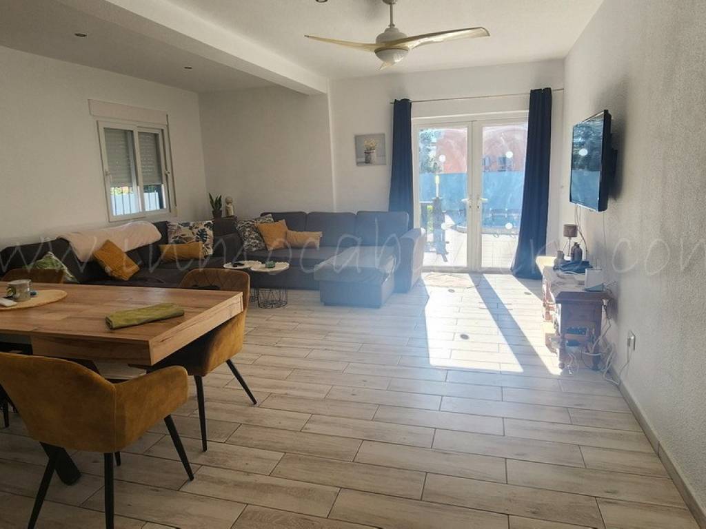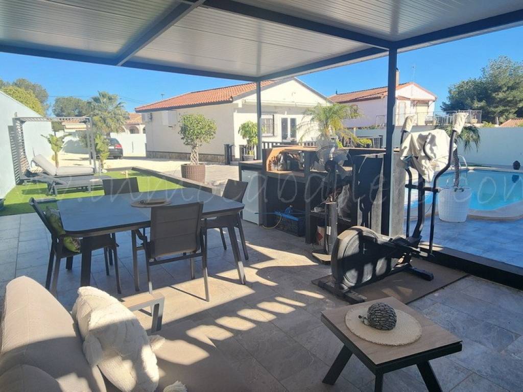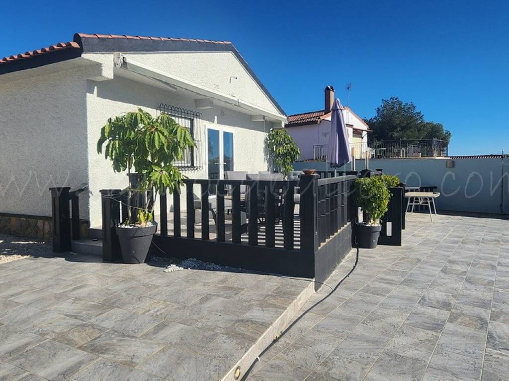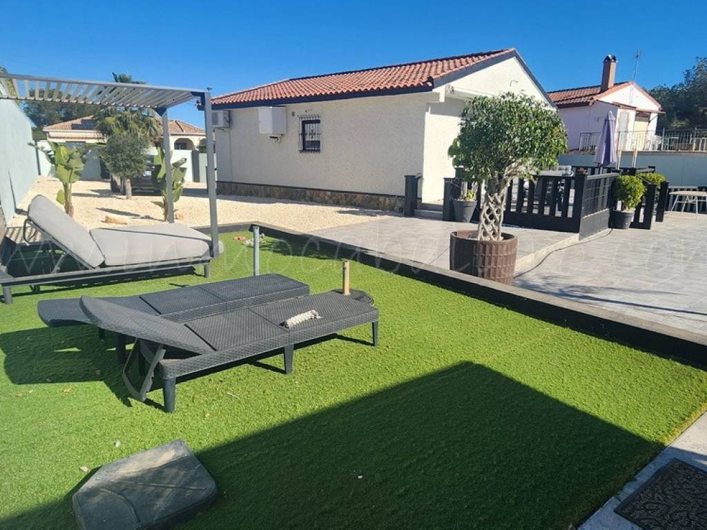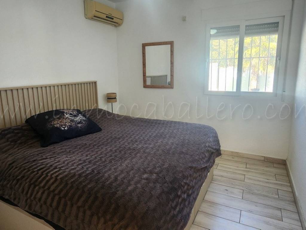Chalet de una sola planta situado en una parcela completamente llana. La vivienda se distribuye en recibidor, cocina abierta, amplio salón-comedor equipado con aire acondicionado, dos dormitorios con armarios empotrados (uno de ellos también con aire acondicionado) y cuarto de baño.