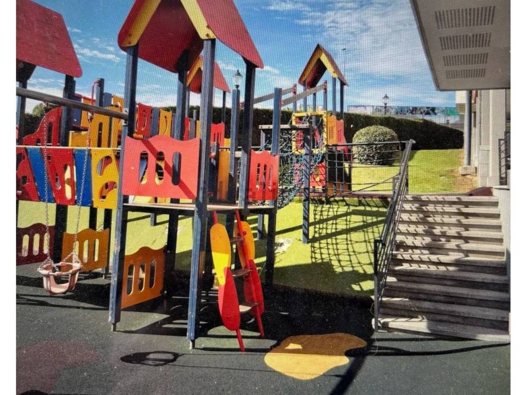 It boasts ample communal areas, including a heated pool, an outdoor pool, a gym, a sauna, and a children's playground.