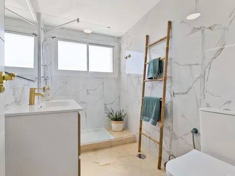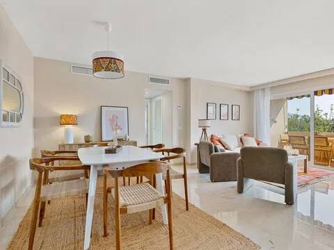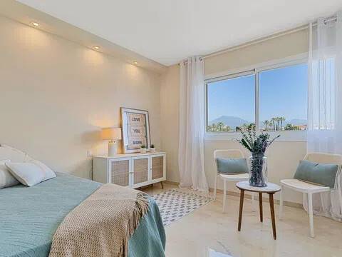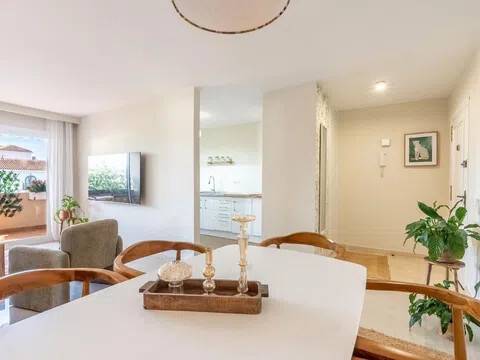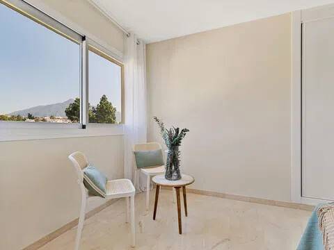 � Ático Renovado con Vistas al Mar y Montaña junto a Puerto Banús, Nueva Andalucía Luminoso y espacioso apartamento recientemente renovado con dos terrazas e impresionantes vistas panorámicas, ubicado a solo 12 minutos a pie de la playa y del emblemático Puerto Banús. Una oportunidad excepcional para quienes buscan una propiedad lista para entrar a vivir en una de las zonas más cotizadas y rodeada de todos los servicios. La vivienda cuenta con una superficie de 100 m² distribuidos en dos dormitorios y dos baños, uno de ellos en suite. Al situarse en la última planta, destaca por su gran luminosidad y sus vistas abiertas al mar y a la montaña desde sus dos terrazas independientes. El apartamento ha sido recientemente renovado e incluye un amplio salón-comedor, cocina totalmente equipada, aire acondicionado por conductos y nuevas ventanas con cerramientos de aislamiento en PVC. El precio de venta incluye tanto los muebles como el menaje, facilitando una mudanza inmediata o su explotación como inversión de alta rentabilidad. El complejo residencial es una urbanización cerrada que dispone de piscina comunitaria y se encuentra en una ubicación estratégica frente al Casino de Nueva Andalucía. Los residentes disfrutan de la cercanía inmediata a pie de supermercados, hoteles, restaurantes, gimnasios y el centro comercial Centro Plaza. Además, la zona está rodeada por los mejores campos de golf de la Costa del Sol y se sitúa a solo 2 minutos en coche de la costa, ofreciendo un entorno exclusivo con accesos inmejorables. No deje pasar esta oportunidad única de inversión o segunda residencia en una ubicación privilegiada. Contáctenos hoy mismo para programar su visita.