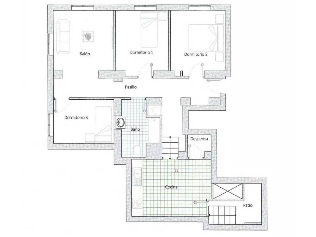 A escasos metros de la calle Recogidas, nos encontramos este magnífico piso con tres dormitorios y un baño, con licencia para alquiler turístico.