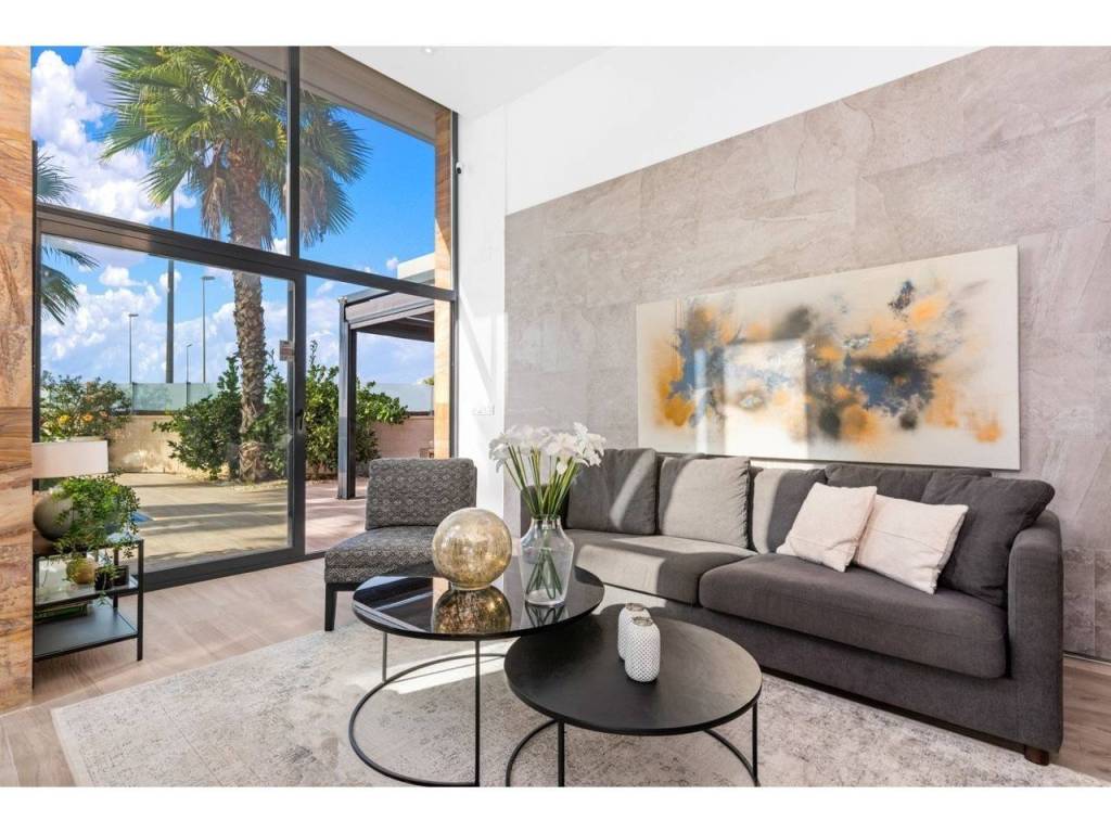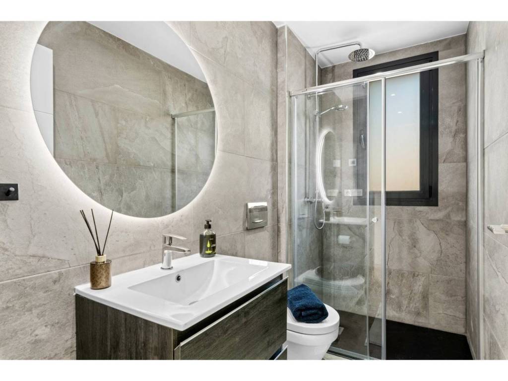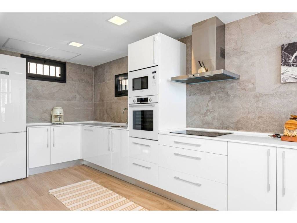 The villa is centrally located with a 10-minute walk to Spain's largest outdoor shopping centre, restaurants and grocery stores. 20 minute walk to the beach. The nearest restaurants are a few meters away.The house has a large outdoor area on the ground floor with sunbeds, sofa groups, dining area and lounge. Perfect property for people who want that little something extra. There is an outdoor kitchen with a sink, grill and space for a large dining table, which is often a meeting point for late evenings with good food. There is also a patch of garden which is perfect for the little ones as a playground. (artificial grass)On the main floor you will find a spacious living room, as well as a kitchen with integrated appliances from Bosch. There is also 1 bedroom with access to the garden area, as well as a bathroom.On the 2nd floor there are 2 bedrooms and 2 bathrooms. There is also access to terraces, as well as stairs up to the roof terrace with its own shower. The roof terrace has a great sea view and has the sun until it sets in late summer evenings.The lower floor has a basement living room, bedroom and bathroom. Here there is also the opportunity to sit down for a bit in peace and quiet if you want to work a bit during the holiday.There is also a washing machine installed in the bathroom.There are a total of 4 bedrooms with space for double beds and associated bathrooms. There is also a room in the basement today that can be used as a bedroom. This is used as a warehouse/storage as of today.The kitchen is modern with integrated, high-quality appliances.