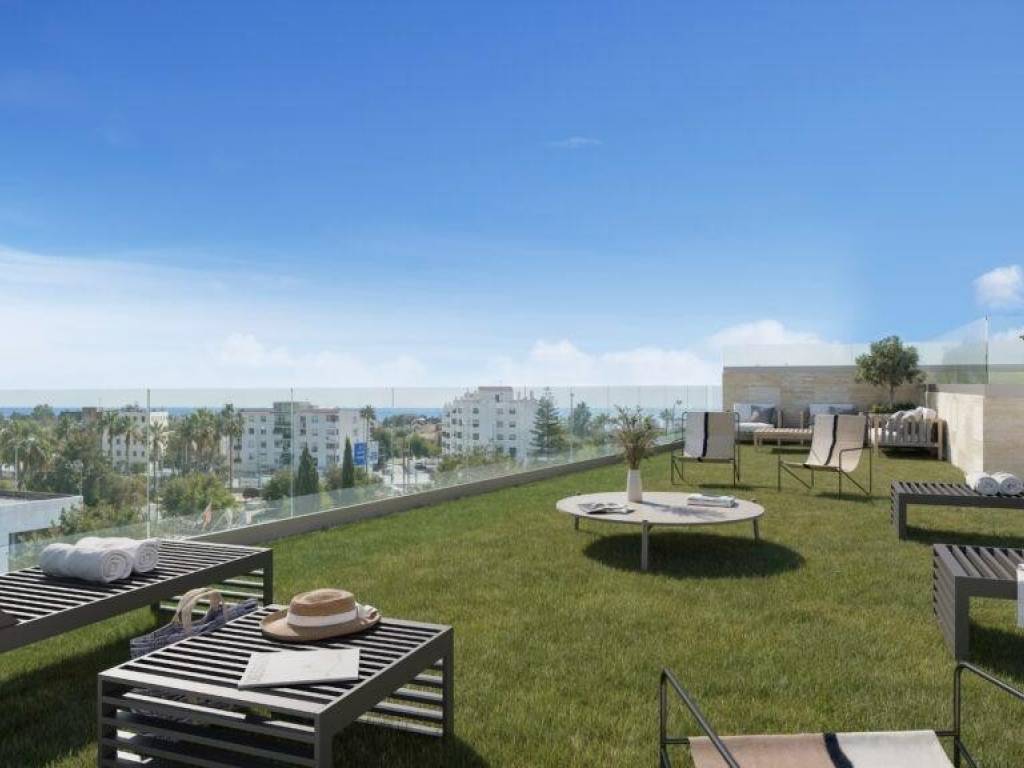 Exclusive New-Build Apartment in San Pedro de Alcántara, MarbellaDiscover this elegant apartment located in one of Marbellas most sought-after areas, San Pedro de Alcántara. With a surface area of 112 m2 and a spacious 17 m2 terrace, this newly built property boasts a modern design and high-quality finishes.It features 3 spacious double bedrooms and 2 bathrooms, a fully equipped kitchen, and top-quality materials such as porcelain stoneware flooring, white lacquered interior carpentry, and aluminum exterior carpentry with thermal break. Its east-facing orientation ensures excellent natural lighting.Features & Extras: Climate Control: Air conditioning, heating, and cooling system Amenities: Built-in wardrobes, elevator, video intercom Common Areas: Communal swimming pool, solarium, gym Security & Comfort: Storage room, included garage, electric vehicle charging point Prime Location: Close to shopping centers, schools, hospitals, supermarkets, and all essential services.A unique opportunity to enjoy exclusivity and comfort in a privileged setting on the Costa del Sol. For more information and viewings, feel free to contact us.