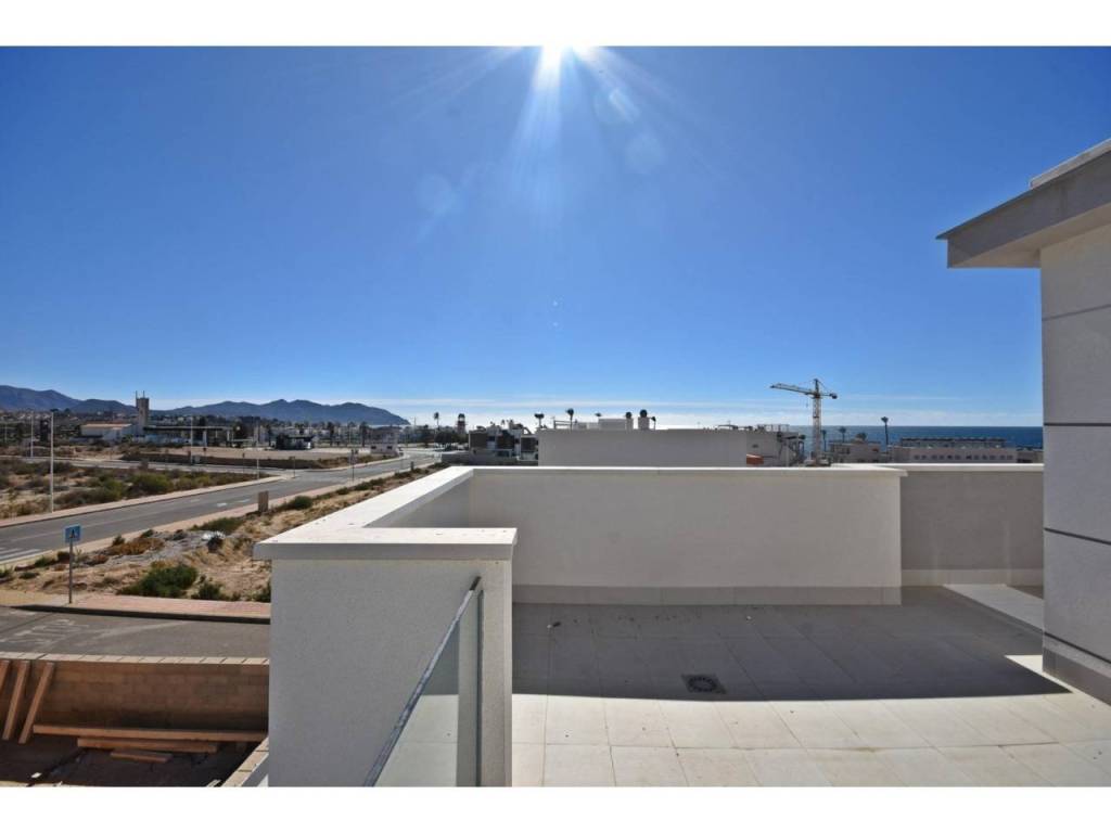 Discover these fantastic new build semi detached villas located in the sought after area of Mar de Plata, El Alamillo, in Puerto de Mazarron. Set just 350 meters from the beach, these modern homes enjoy beautiful sea views from their private solariums, offering a unique opportunity to embrace the Mediterranean lifestyle on the Costa Calida. The neighborhood is quiet, residential and well established, ideal for year round living or as a holiday retreat.