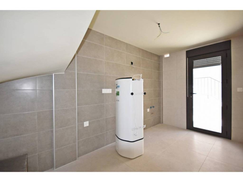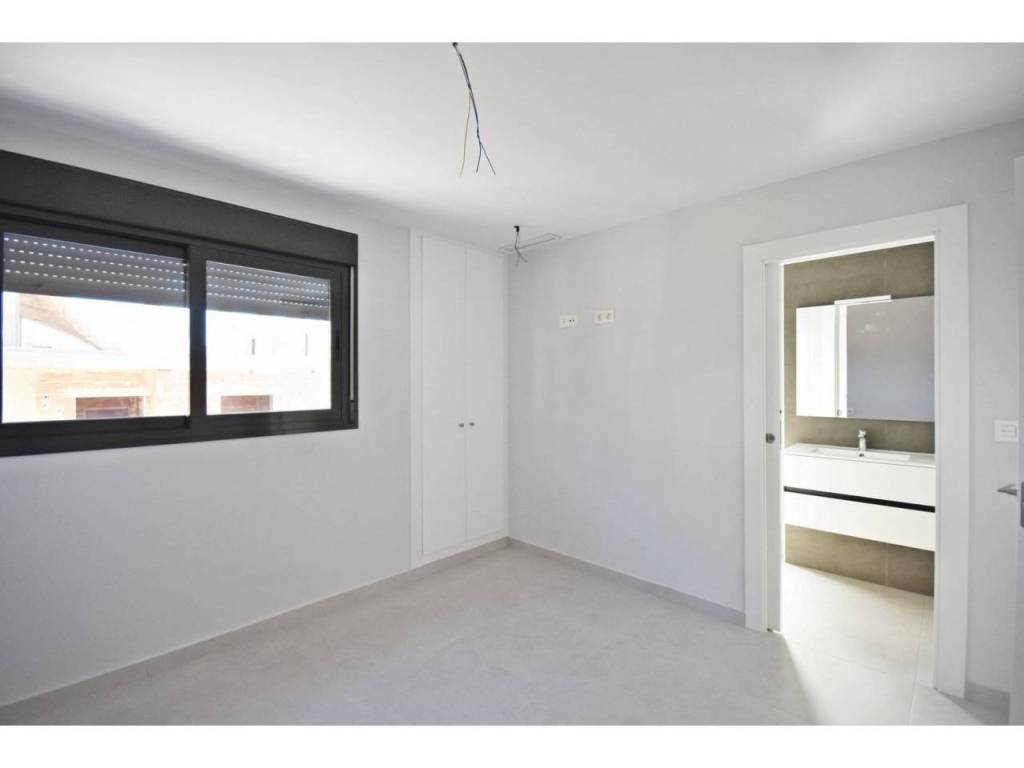 These homes are built with quality materials and include a reinforced entrance door, pre installation for ducted air conditioning, bathrooms with furniture, mirrors and shower screens, hot water system powered by aerothermal energy, electric blinds in bedrooms and main facade openings, and aluminum exterior carpentry with double glazing. The kitchen is delivered without furniture, allowing buyers to personalize it to their taste.