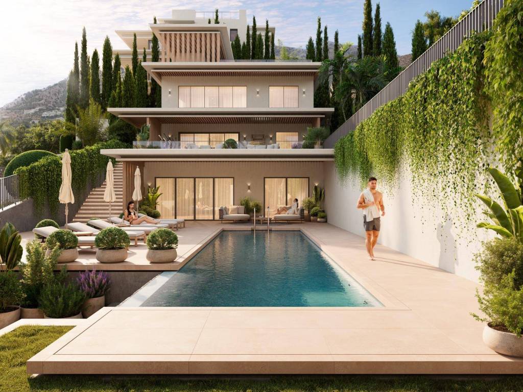 Discover an extraordinary new residential development in Buenavista, Mijas, just minutes from the golden beaches and vibrant coastline of the Costa del Sol. This exclusive gated community features 105 luxury apartments and penthouses, as well as 14 garden villas and 14 sky villas, all offering breathtaking panoramic sea views from every home. Designed for those who value tranquility, sophistication, and Mediterranean elegance, these residences combine cutting-edge architecture with natural surroundings.