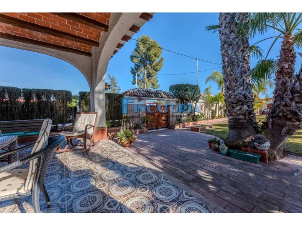 En la primera planta, se ubica una habitación con chimenea que invita a relajarse, además de una gran terraza con impresionantes vistas al río Turia, perfecta para disfrutar de atardeceres inolvidables. El exterior es un verdadero oasis: una piscina privada de 4x10 metros rodeada de un jardín con riego automático, un vestuario con baño y duchas exteriores, y un paellero con zona de aperitivo para disfrutar de momentos al aire libre.
