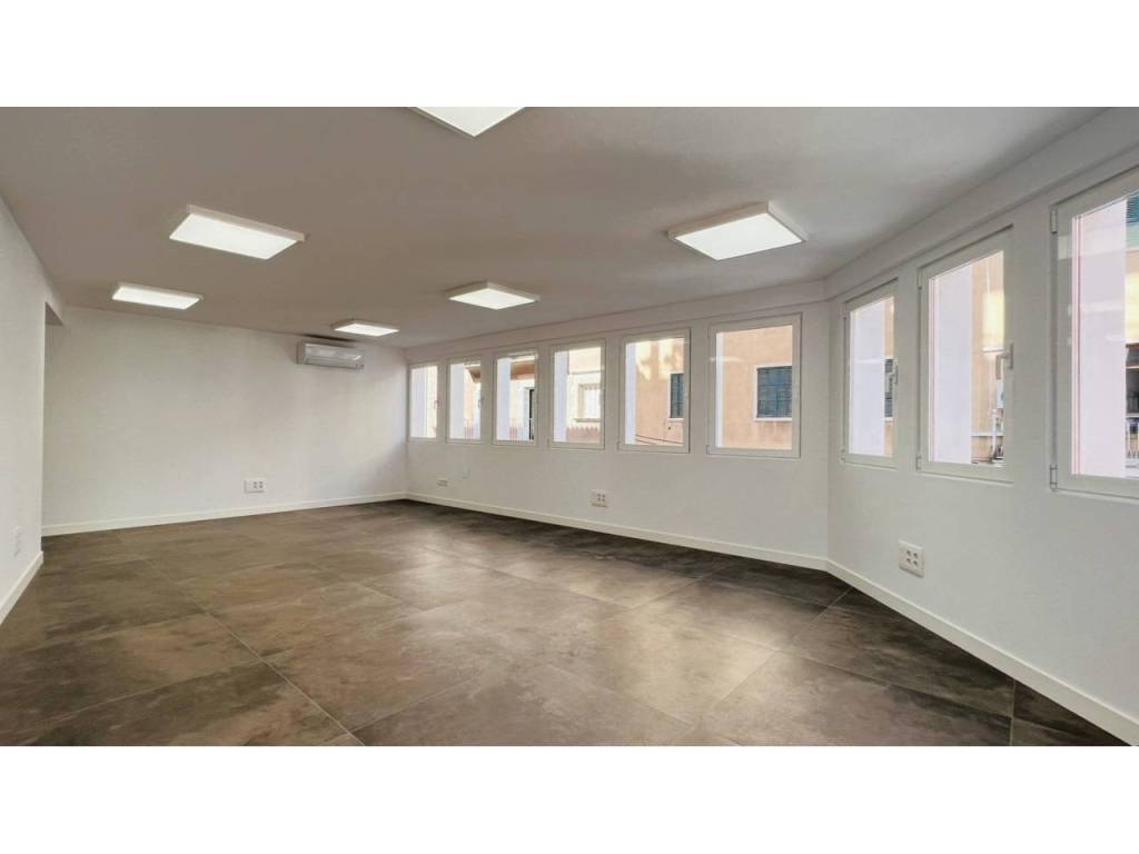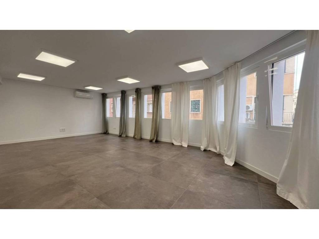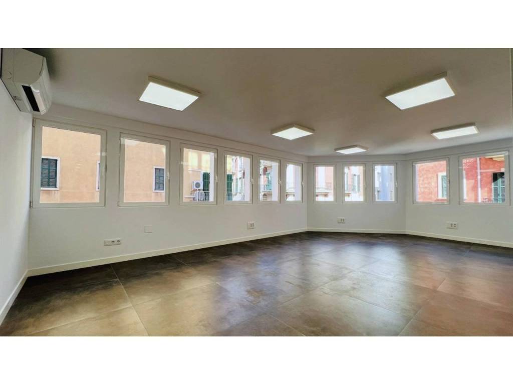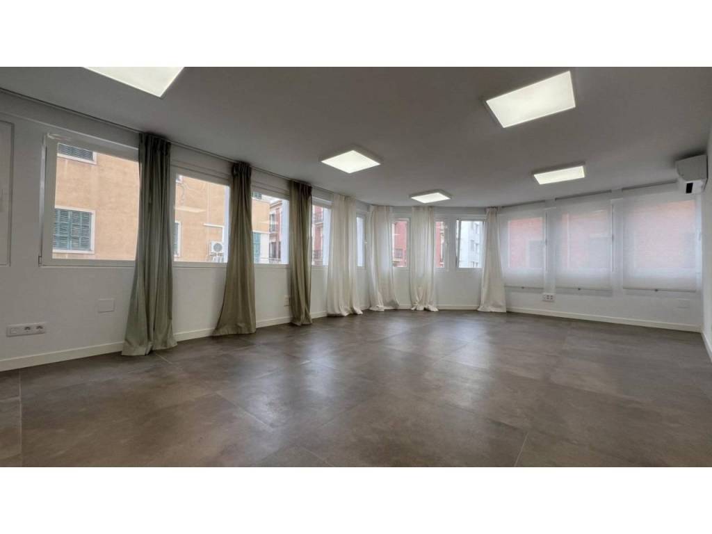 Bonito espacio completamente reformado haciendo esquina. Ubicada en el centro de Palma, entre Avenidas y Mercado del Olivar. La sala diáfana rodeada de ventanas que puede ser dividida en dos espacios si se desea. Baño completo y cocina equipada. Consta de varios splits de aire frío / calor.