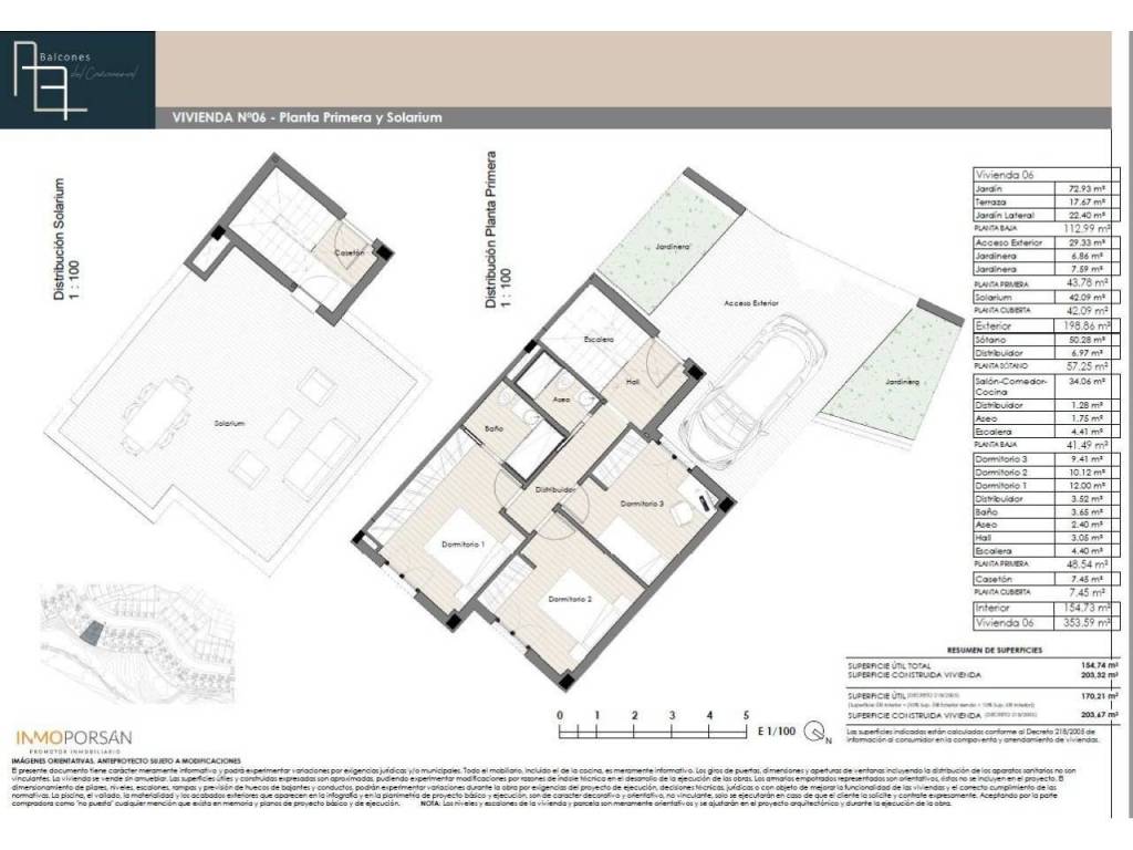 Cada una de estas hermosas viviendas cuenta con terraza, jardín, planta baja y planta primera, ofreciéndote un espacio amplio y cómodo para tu familia. Cuentan con 3 dormitorios, 2 baños uno de ellos en suite y un aseo, estos chalets cuentan con solárium de 42 m2 con vistas inmejorables.