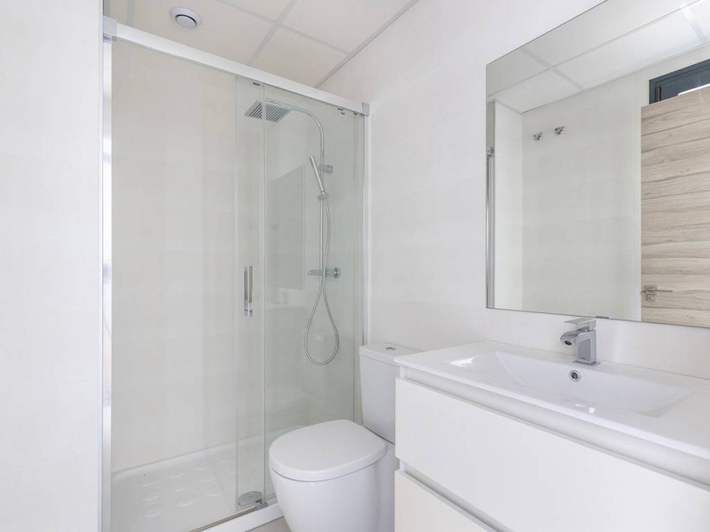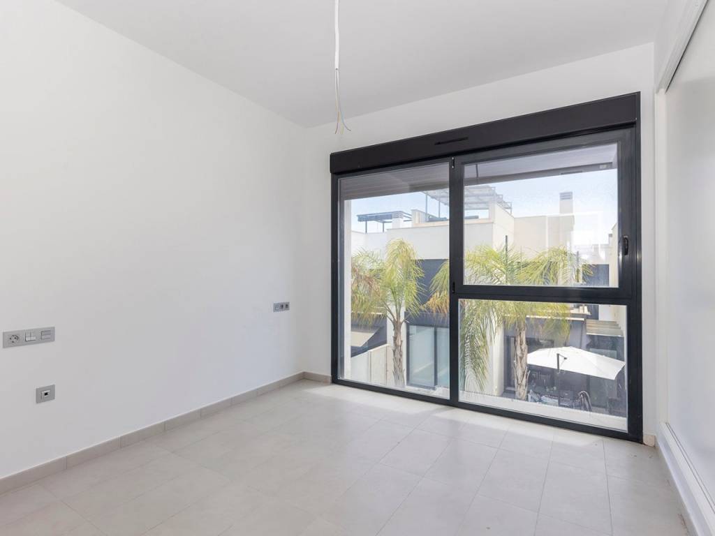 Modern villa with 3 bedrooms and 2 bathrooms. The property is distributed on 2 floors, on the ground floor there is a living-dining room with open kitchen, 1 bedroom and 1 bathroom. Upstairs we will find 2 bedrooms, a bathroom and a terrace. The house also has a large solarium of 37m2. The villa also has a private pool and private entrance for the car.