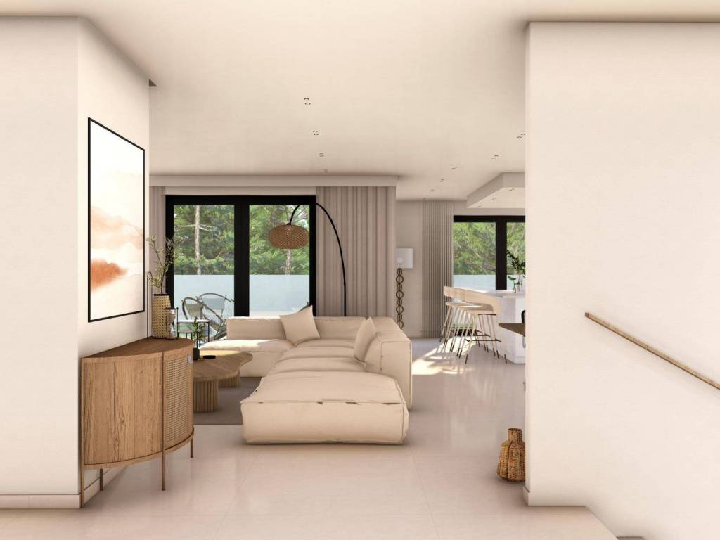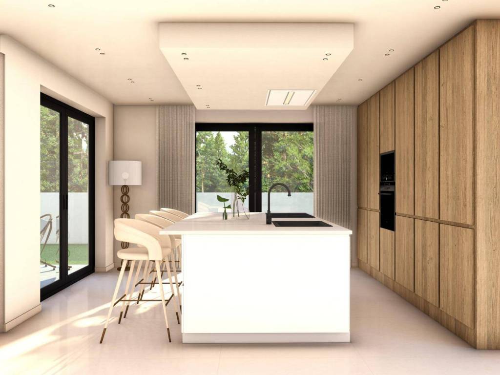 The ground floor features one or two additional en suite bedrooms, a guest toilet and an open plan kitchen connected to the living and dining area, with direct access to the terrace and pool. A rooftop solarium crowns each property, offering panoramic mountain or sea views and the option to install a jacuzzi.