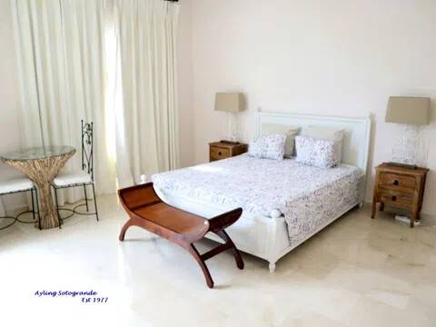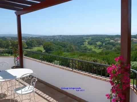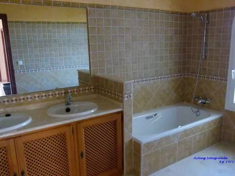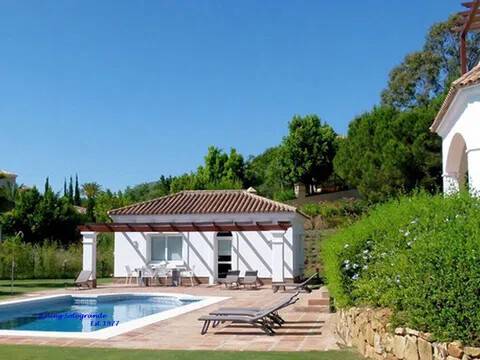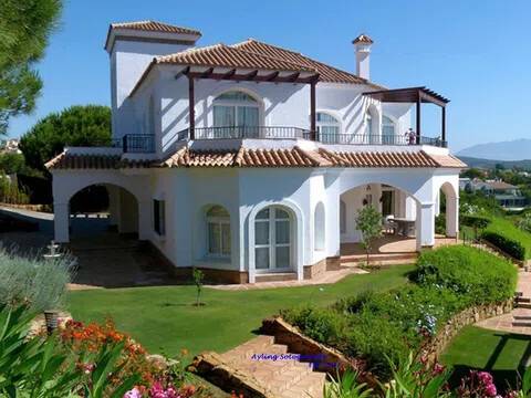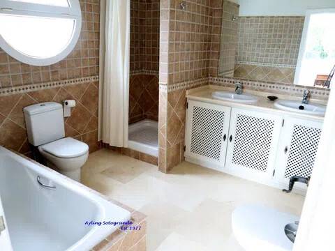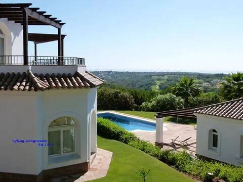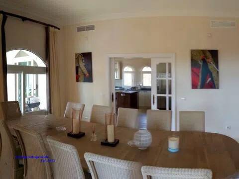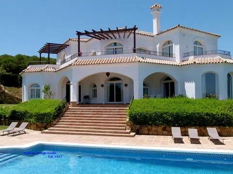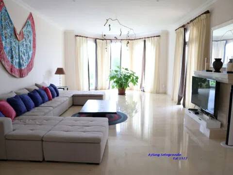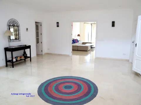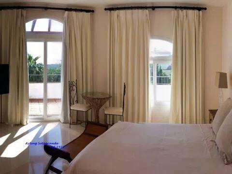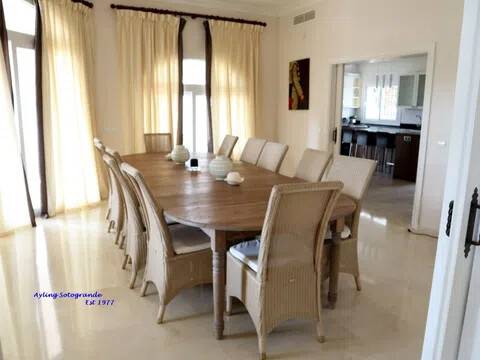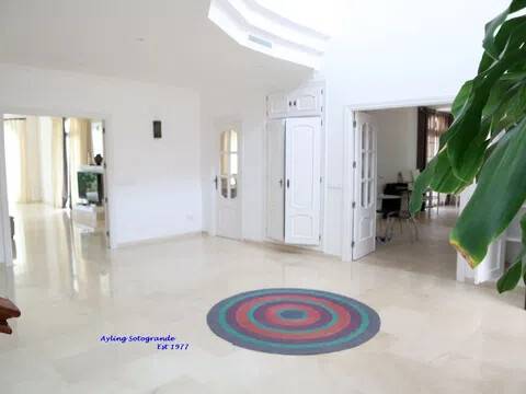 Magnifica y lujosa villa de 6/7 dormitorios, en la parte alta de Sotogrande con vistas impresionantes sobre los campos de golf de Almenara y San Roque y hasta el mar. Diseñado en clásico estilo ‘Andaluz’ con acabados de alta calidad, la casa consta de: Porche de entrada, Vestíbulo con techo alto y aseo de cortesía con ducha, y acceso al garaje doble, gran salón con chimenea, puertas que dan a la terraza cubierta, con ventanales tipo “bahía” y puertas correderas al comedor. Enorme y lujosa cocina amueblada con isla central y área de desayuno, lavadero separado. También en la planta baja hay un despacho / sala de TV/5º dormitorio. En la primera planta se encuentra el gran dormitorio principal que consiste: dormitorio, vestidor, cuarto de baño en-suite y terraza privada con vistas panorámicas. Dormitorio de invitados también con baño en-suite, área de vestidor y acceso a una terraza. Dos dormitorios más que comparten cuarto de baño separado. Hay también en el sótano dos dormitorios extras que comparten cuarto de baño completo. En el exterior se encuentran los jardines irrigados y cuidadosamente diseñados y las terrazas, gran piscina complementada con una “casita” en la que encontraremos, sala de estar, cocina separada, dormitorio con cuarto de ducha y terraza cubierta. Disponibles todos los planos.