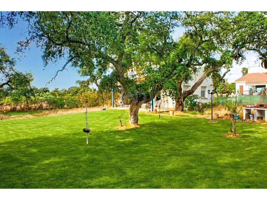 Varios alcornoques se alzan en el terreno aportando carácter y personalidad al paisaje.