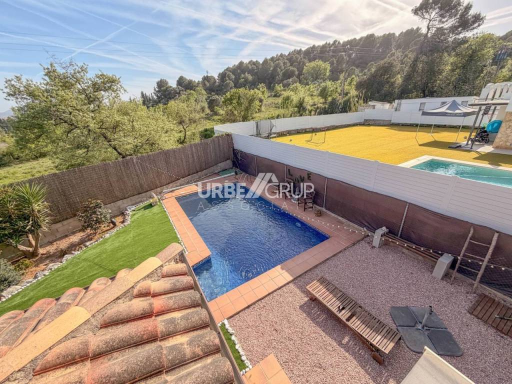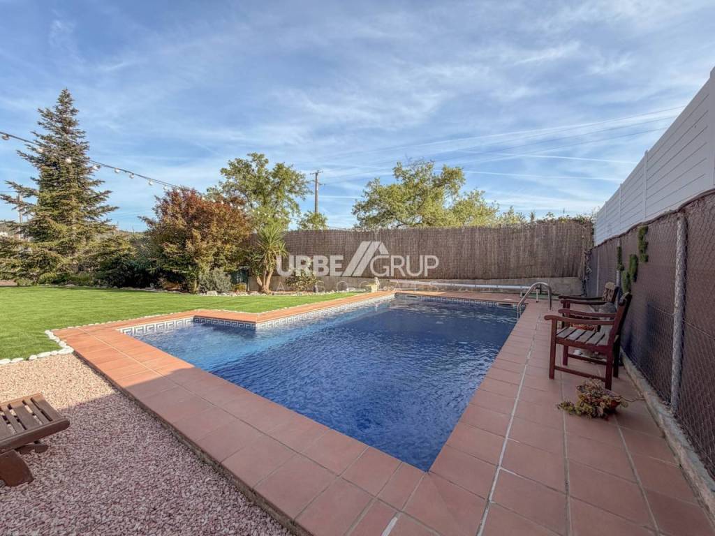 Total surface area 270 m², terraced villa plot area 388 m², usable floor area 150 m², single bedrooms: 1, double bedrooms: 3, double bedrooms are ensuite: 1, 2 bathrooms, 1 toilets, age between 20 and 30 years, built-in wardrobes, heating (natural gas), paving, ext. woodwork (aluminum), internal carpentry (haya), kitchen, dining room (35 m²), state of repair: in good condition, garage (over 2), gas, garden (own), utility room (en garaje), floor no.: 3, facing south, swimming pool (own), sunny, terrace, lands: marble, built-up, double glazing, pets accepted se aceptan, corner, lighting, inner courtyard, energy emission rate: F, 309, energy consumption rate: E, 53.