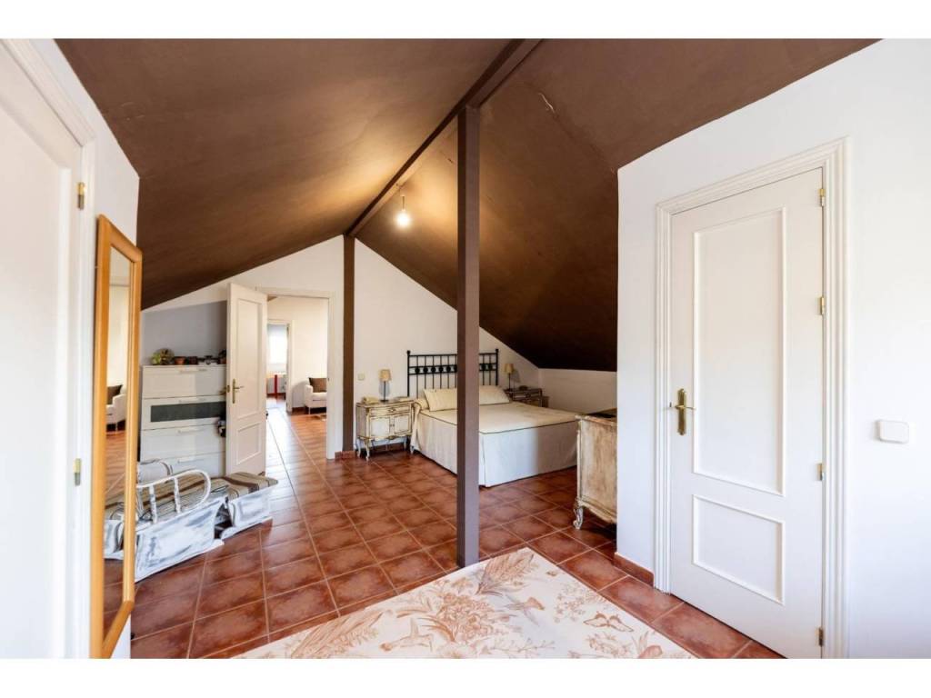 Accedemos a una acogedora planta principal donde encontramos un amplio salón con chimenea, perfecto para crear un ambiente cálido y confortable. La cocina, de grandes dimensiones, ofrece un espacio funcional y cómodo. En esta misma planta se sitúan varias habitaciones junto a un baño completo, facilitando la vida diaria sin necesidad de desplazarse entre plantas.