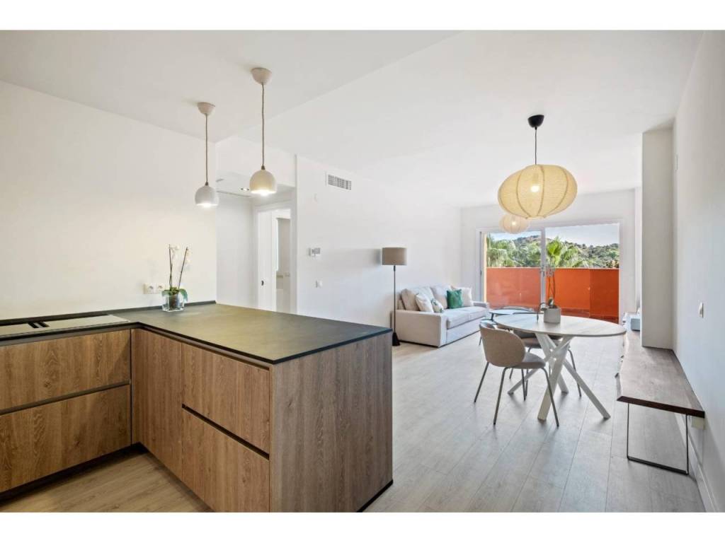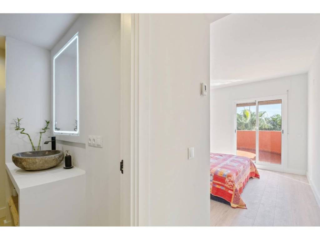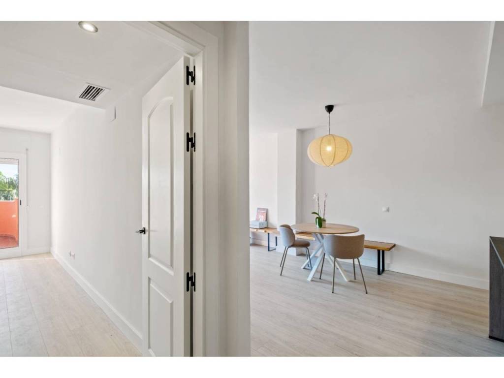 En una de las urbanizaciones más exclusivas y cuidadas de la Costa del Sol, se encuentra esta vivienda reformada que combina diseño, comodidad y un entorno inmejorable. Con una superficie construida de 110 m2, el piso se distribuye en un luminoso salón-comedor con salida directa a la terraza, una cocina americana moderna totalmente equipada, dos dormitorios y dos baños completos de los cuales uno está en suite.