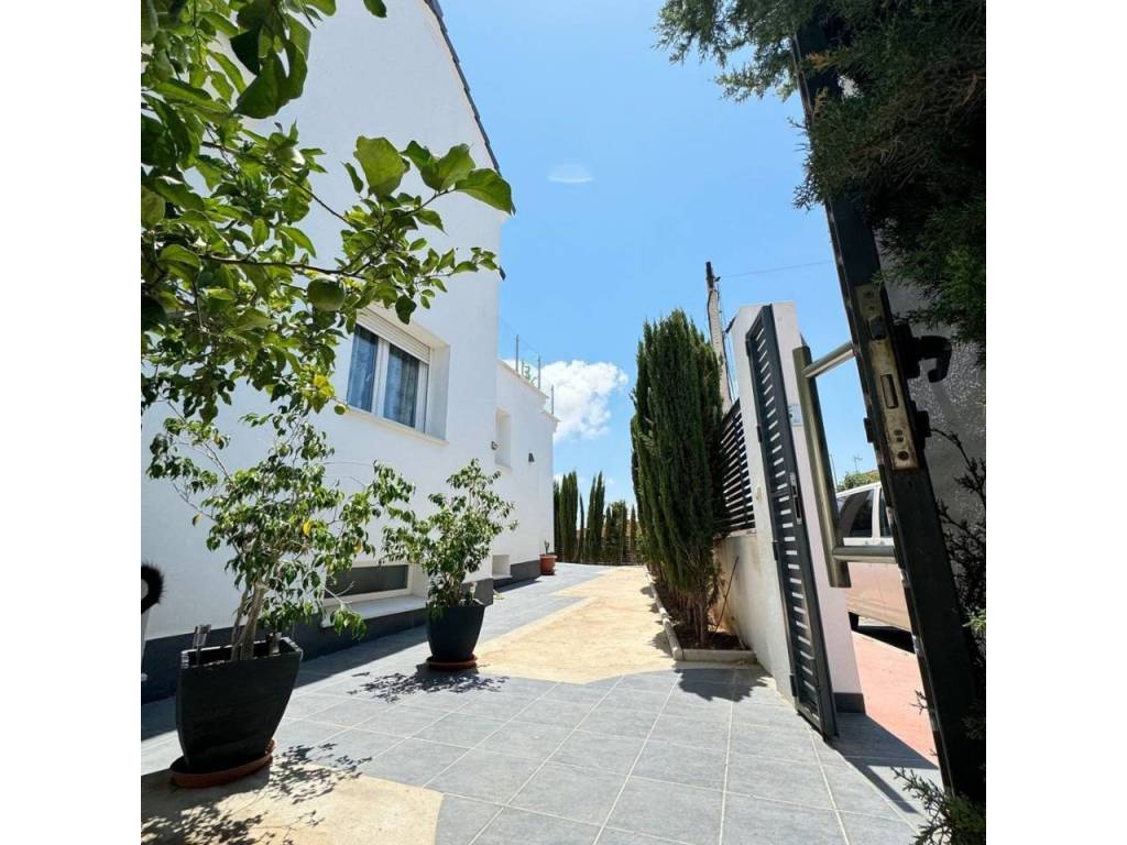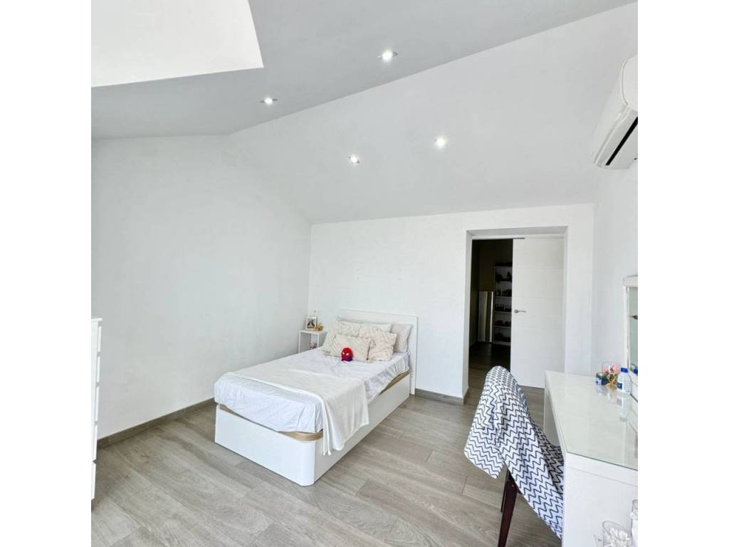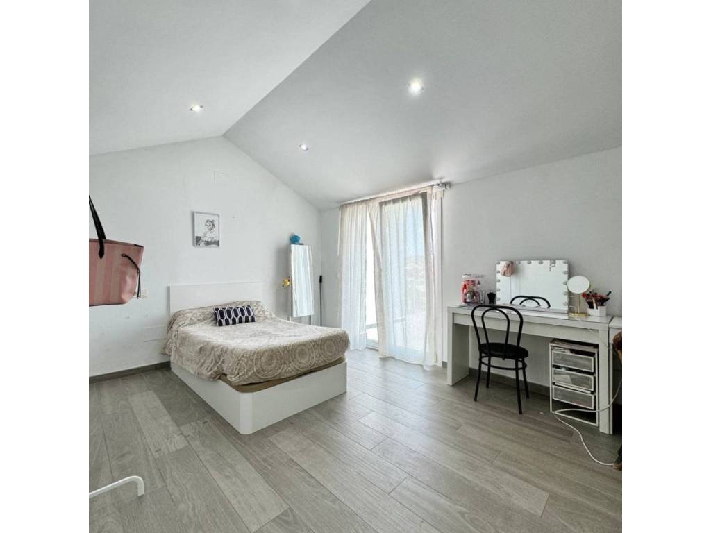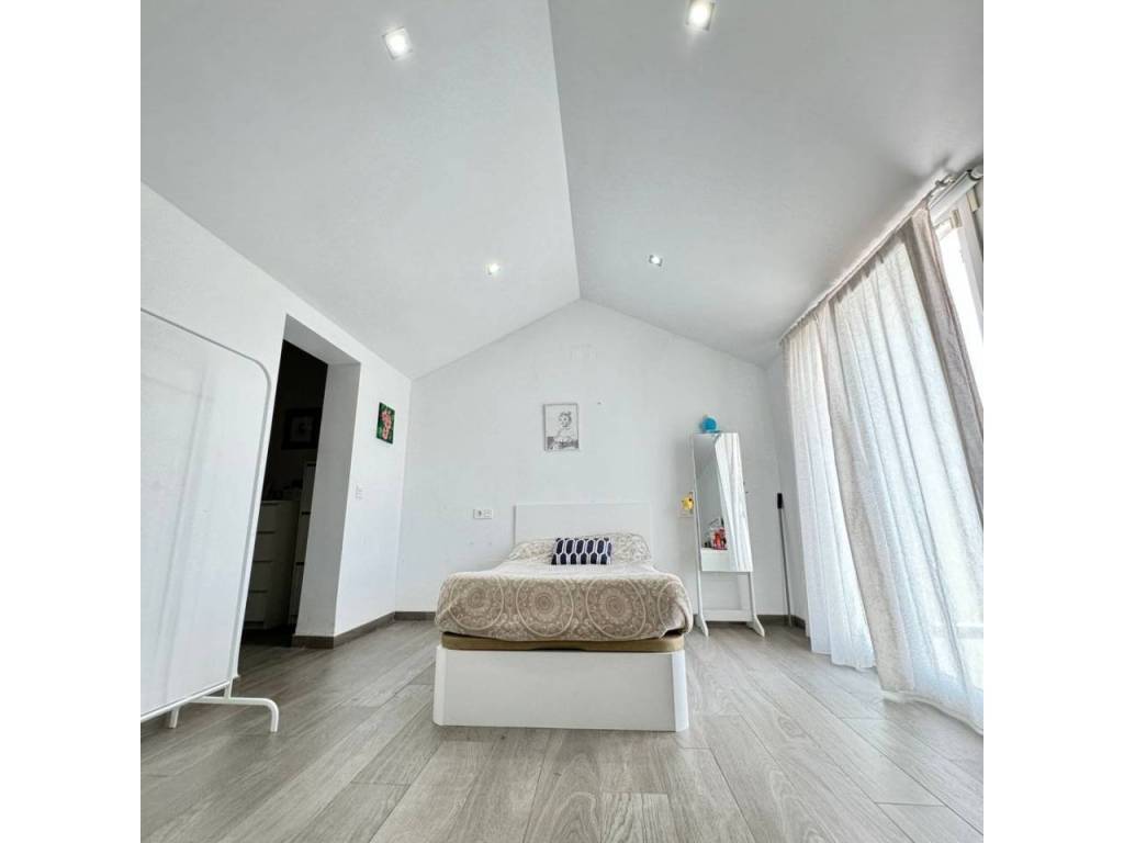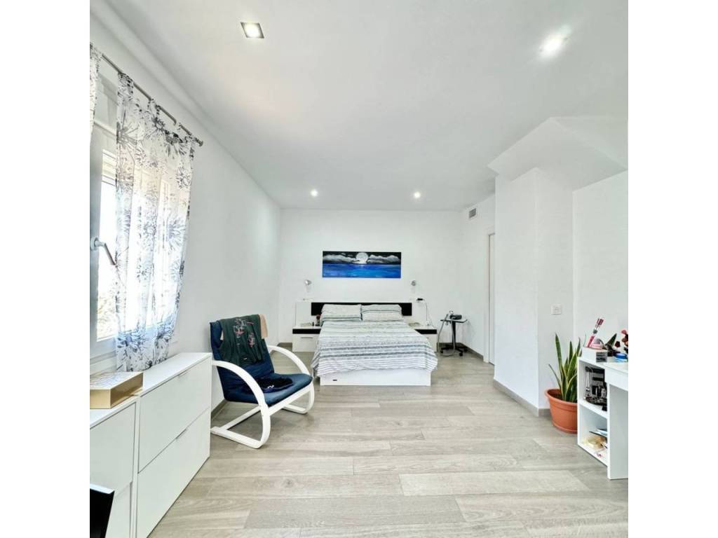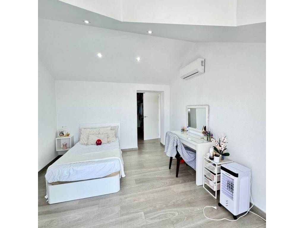 Espectacular casa modernista en el Puerto de la Torre, construida desde los cimientos hace menos de 10 años. Esta vivienda destaca por su diseño elegante, moderno y minimalista, con un concepto de espacios abiertos que le aporta un carácter vanguardista. La luz natural inunda cada rincón, siendo uno de sus mayores atractivos. Cómoda, familiar y funcional, se distribuye en tres amplias plantas. En la planta principal, a nivel de calle, encontramos un porche exterior con espacio suficiente para instalar una piscina y crear una zona recreativa al aire libre. Al ingresar a la vivienda, nos recibe un amplio salón-comedor con cocina americana de diseño abierto, un cuarto de baño completo y una estancia destinada a lavandería y despensa. Desde la cocina se accede al porche trasero, perfecto para comidas al aire libre. Esta planta también alberga un espacioso dormitorio con vestidor y baño en suite. Subiendo por unas elegantes escaleras junto al salón, accedemos a la segunda planta, donde se ubican dos dormitorios, ambos con vestidor, que comparten un baño central. Las dos habitaciones cuentan con grandes ventanales orientados al sur y acceso directo a una espectacular azotea de 41 m², ideal para disfrutar del sol y las vistas. En la última planta se encuentra una versátil zona recreativa, perfecta para recibir visitas o invitados, equipada con minibar y un baño adicional. Además, esta planta alberga el área de estacionamiento con capacidad para dos vehículos, un taller, espacio adicional de almacenamiento y una sala de máquinas que contiene el sistema de calefacción y el depósito de agua. Una casa que supera todas las expectativas. En fotos es preciosa, pero en persona te enamorará. Ven a visitarla, te sorprenderá.