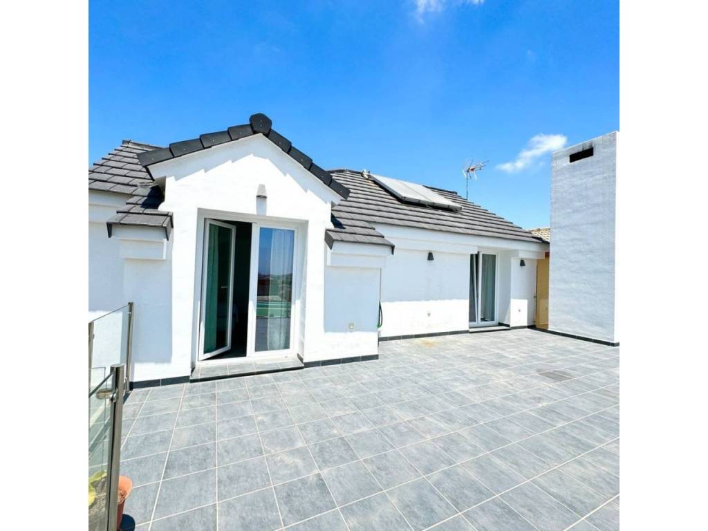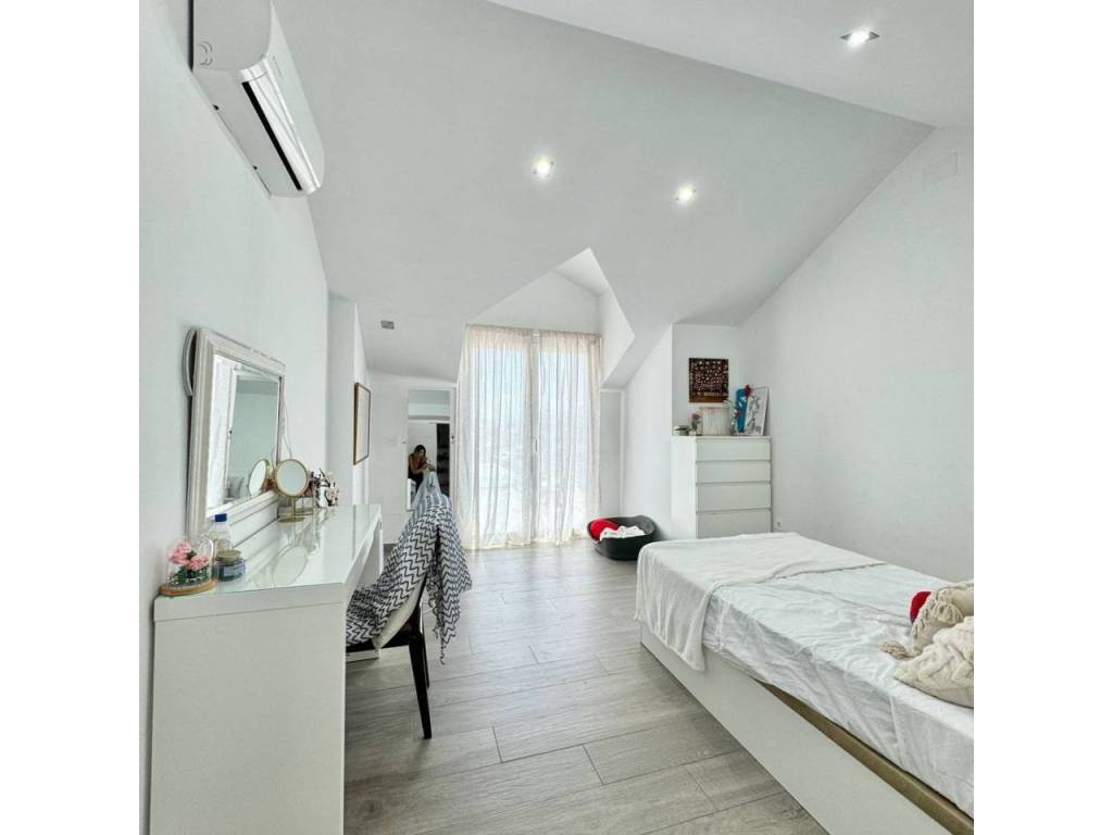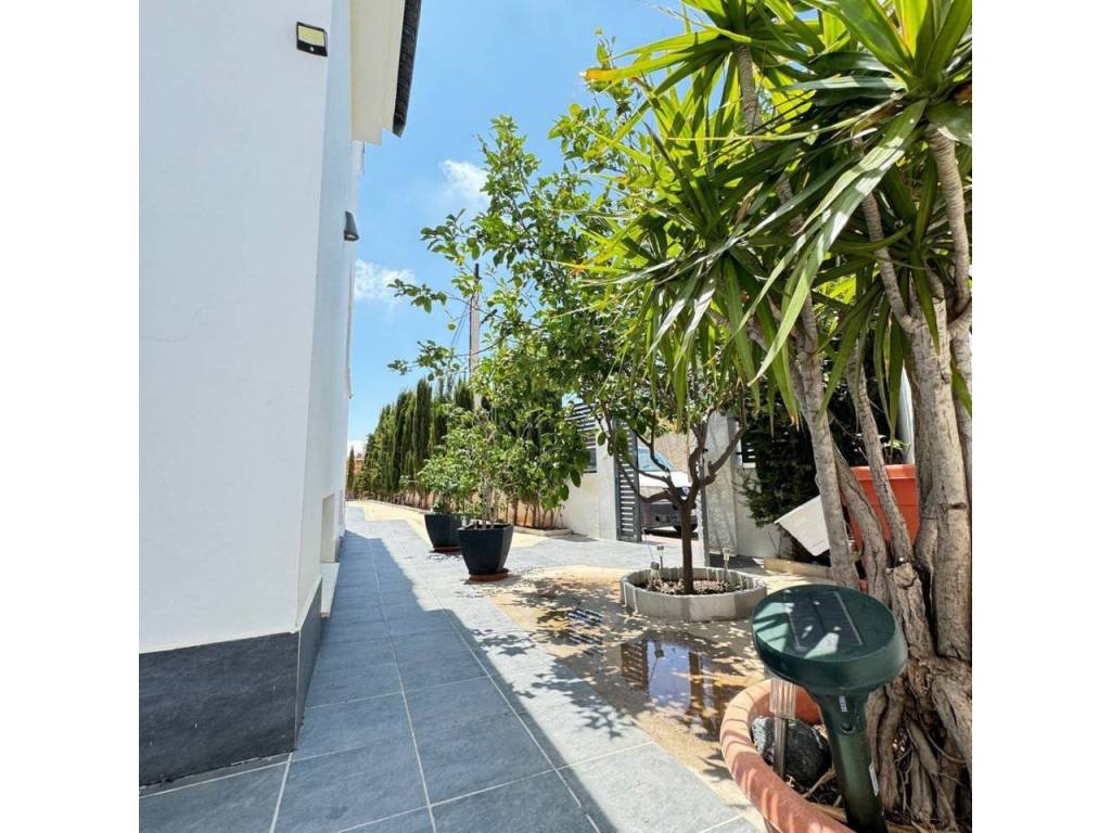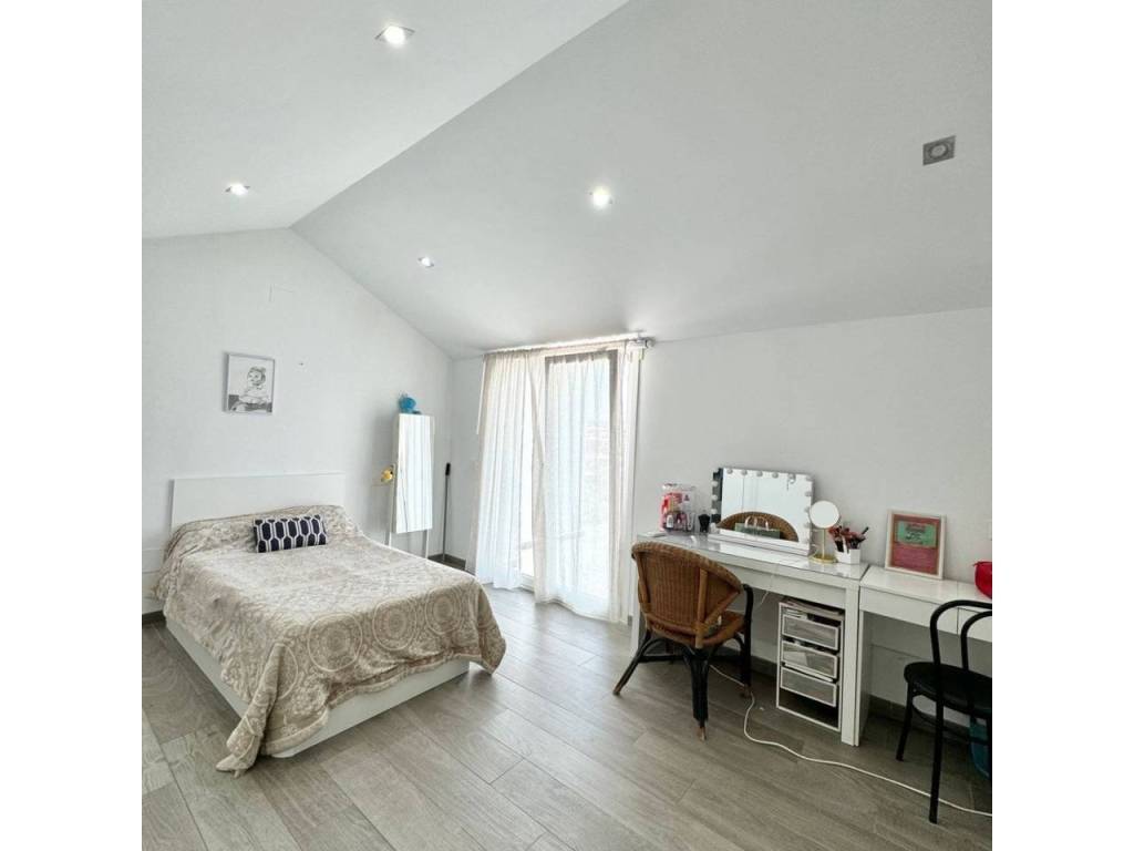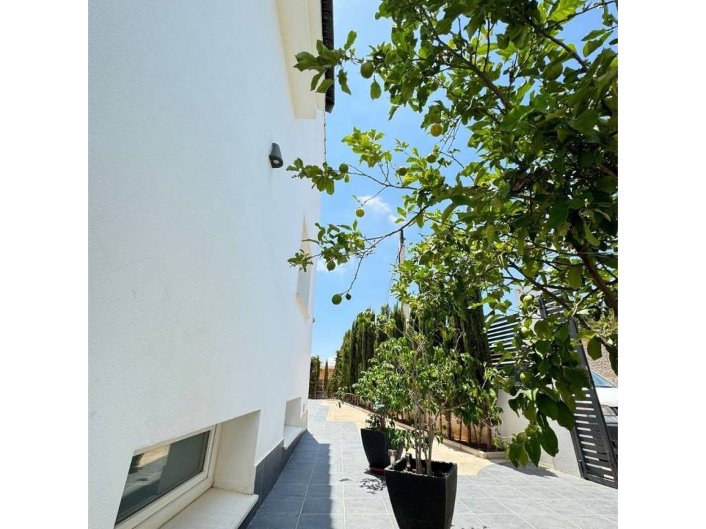 Espectacular casa modernista en el Puerto de la Torre, construida desde los cimientos hace menos de 10 años. Esta vivienda destaca por su diseño elegante, moderno y minimalista, con un concepto de espacios abiertos que le aporta un carácter vanguardista. La luz natural inunda cada rincón, siendo uno de sus mayores atractivos. Cómoda, familiar y funcional, se distribuye en tres amplias plantas. En la planta principal, a nivel de calle, encontramos un porche exterior con espacio suficiente para instalar una piscina y crear una zona recreativa al aire libre. Al ingresar a la vivienda, nos recibe un amplio salón-comedor con cocina americana de diseño abierto, un cuarto de baño completo y una estancia destinada a lavandería y despensa. Desde la cocina se accede al porche trasero, perfecto para comidas al aire libre. Esta planta también alberga un espacioso dormitorio con vestidor y baño en suite. Subiendo por unas elegantes escaleras junto al salón, accedemos a la segunda planta, donde se ubican dos dormitorios, ambos con vestidor, que comparten un baño central. Las dos habitaciones cuentan con grandes ventanales orientados al sur y acceso directo a una espectacular azotea de 41 m², ideal para disfrutar del sol y las vistas. En la última planta se encuentra una versátil zona recreativa, perfecta para recibir visitas o invitados, equipada con minibar y un baño adicional. Además, esta planta alberga el área de estacionamiento con capacidad para dos vehículos, un taller, espacio adicional de almacenamiento y una sala de máquinas que contiene el sistema de calefacción y el depósito de agua. Una casa que supera todas las expectativas. En fotos es preciosa, pero en persona te enamorará. Ven a visitarla, te sorprenderá.