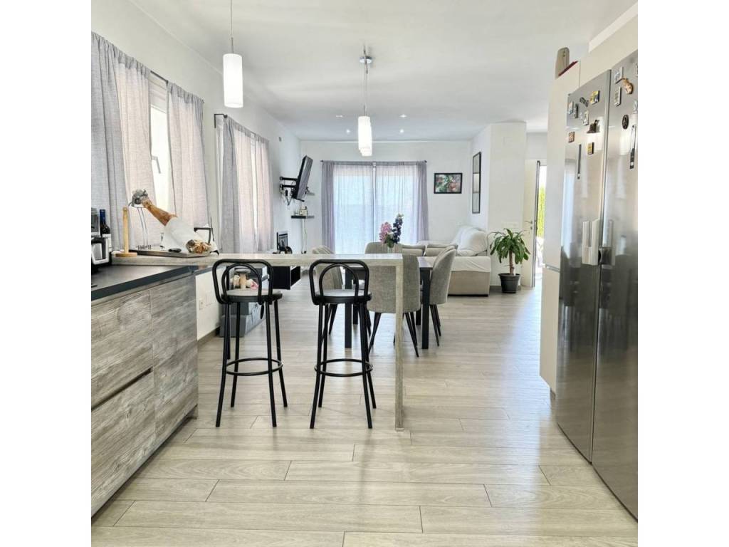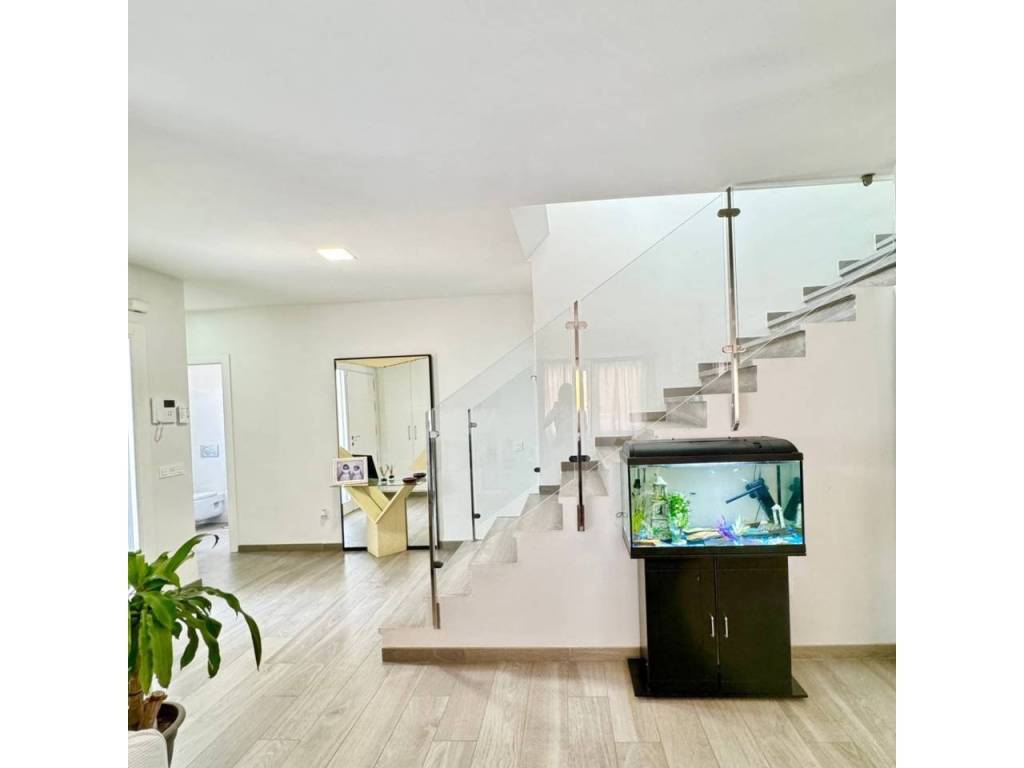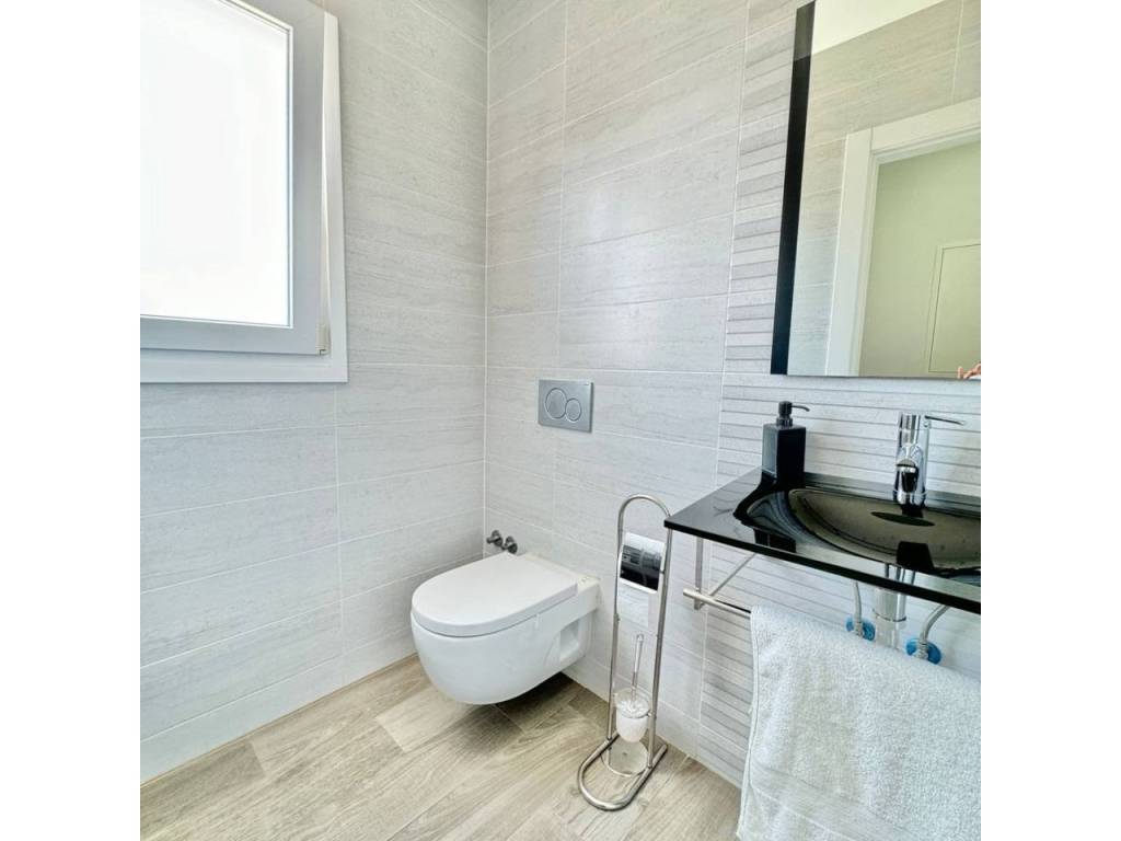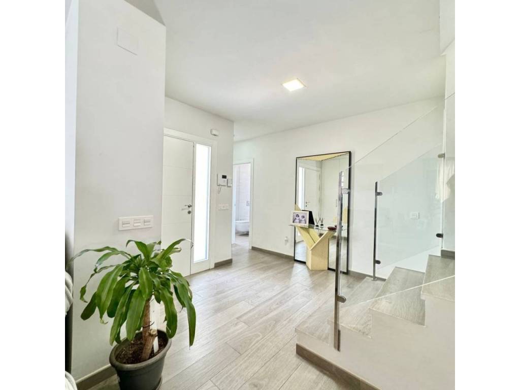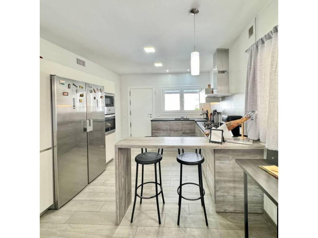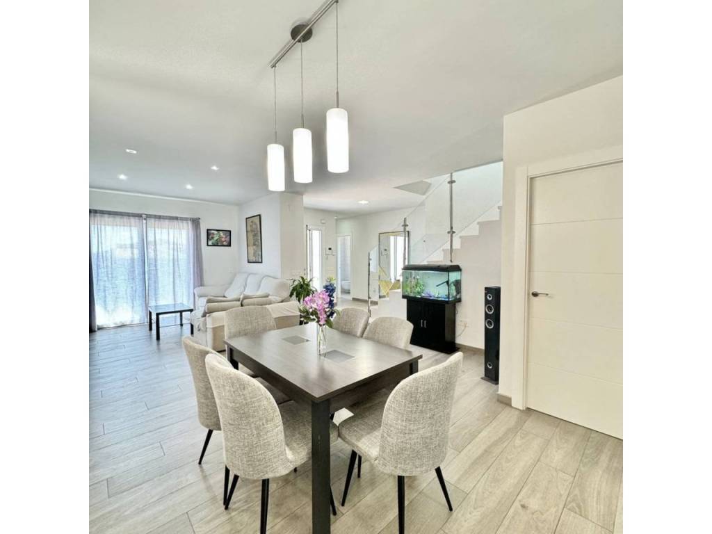 Espectacular casa modernista en el Puerto de la Torre, construida desde los cimientos hace menos de 10 años. Esta vivienda destaca por su diseño elegante, moderno y minimalista, con un concepto de espacios abiertos que le aporta un carácter vanguardista. La luz natural inunda cada rincón, siendo uno de sus mayores atractivos. Cómoda, familiar y funcional, se distribuye en tres amplias plantas. En la planta principal, a nivel de calle, encontramos un porche exterior con espacio suficiente para instalar una piscina y crear una zona recreativa al aire libre. Al ingresar a la vivienda, nos recibe un amplio salón-comedor con cocina americana de diseño abierto, un cuarto de baño completo y una estancia destinada a lavandería y despensa. Desde la cocina se accede al porche trasero, perfecto para comidas al aire libre. Esta planta también alberga un espacioso dormitorio con vestidor y baño en suite. Subiendo por unas elegantes escaleras junto al salón, accedemos a la segunda planta, donde se ubican dos dormitorios, ambos con vestidor, que comparten un baño central. Las dos habitaciones cuentan con grandes ventanales orientados al sur y acceso directo a una espectacular azotea de 41 m², ideal para disfrutar del sol y las vistas. En la última planta se encuentra una versátil zona recreativa, perfecta para recibir visitas o invitados, equipada con minibar y un baño adicional. Además, esta planta alberga el área de estacionamiento con capacidad para dos vehículos, un taller, espacio adicional de almacenamiento y una sala de máquinas que contiene el sistema de calefacción y el depósito de agua. Una casa que supera todas las expectativas. En fotos es preciosa, pero en persona te enamorará. Ven a visitarla, te sorprenderá.