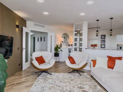 Luminoso y espacioso apartamento con impresionante terraza y vistas panorámicas al mar Imagina una mañana con el sol dorado iluminando suavemente un amplio y luminoso apartamento de 171 m², donde cada detalle está diseñado para ofrecer confort y bienestar. Este apartamento en la cuarta planta con ascensor combina estilo, luz y sensación de libertad. Lo que hace especial a este hogar: 4 amplios dormitorios — tu oasis personal de tranquilidad. 2 baños modernos con acabados de alta calidad. Cocina independiente — un espacio para la inspiración culinaria. Vestidor para máxima comodidad. Gran terraza orientada al sureste — perfecta para el café de la mañana, los atardeceres y vistas inolvidables al mar. Comodidad y servicios: Aire acondicionado en todas las estancias — fresco en verano y acogedor en invierno. Plaza de parking subterráneo y trastero para mayor comodidad. Piscina comunitaria — disfrute del descanso en cualquier momento. Vistas panorámicas al mar desde varias habitaciones, creando una sensación de armonía y libertad. Ubicación: A pocos pasos de la playa, tiendas, restaurantes y colegios. Excelente comunicación de transporte, ideal para residencia permanente o vacaciones. Precio y condiciones: Precio: 697.000 € Gastos de comunidad: 148 €/mes Impuesto sobre bienes inmuebles: 835-1.400 €/año (según padrón) Este apartamento es más que una vivienda. Es la oportunidad de vivir al sol, disfrutar cada momento en una amplia terraza con vistas al mar y crear recuerdos inolvidables cada día. ¡Contáctanos hoy mismo y da el primer paso hacia la vida de tus sueños! Nota legal: Se informa a los clientes que la comisión de la agencia ya está incluida en el precio de venta. El precio indicado no incluye los gastos relacionados con la compraventa del inmueble conforme a la legislación vigente (ITP o IVA, gastos de notaría, registro, servicios de agencia, etc. ).