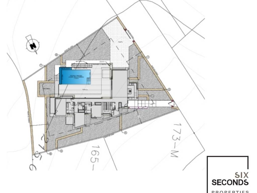 The Cumbre del Sol residential development is home to this villa, characterised by an architecture that looks outwards, towards the blue of the Mediterranean and designed for sharing and celebration. The upper floor houses the entire house, which provides extra comfort. The night area consists of three en-suite bedrooms bathed in natural light that preserve a great deal of privacy with respect to the day areas. The living room, dining room and kitchen are linked to the exterior, thanks to the use of glazed walls that favour a permanent visual connection with the sea. The terrace of more than 70m is dominated by an infinity pool. The house is complemented by a multi-purpose basement with two porches and a garage. The geometric shapes that outline the exterior structure are clad in glass and sheets of natural stone in grey, which contrasts with the white of the façade. The cube that houses the terrace of the master bedroom stands out, jutting out and looking directly out to sea.