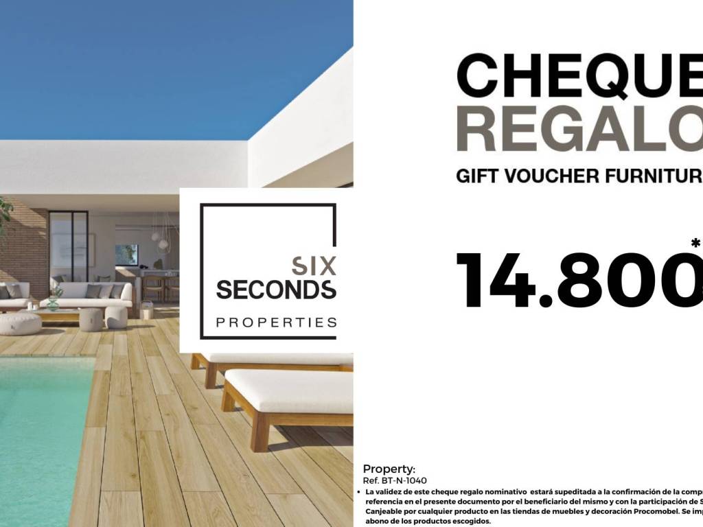 At Six Seconds Properties we help you to turn your new property into the home of your dreams,giving you a gift voucher for 14800 worth of furniture and a technical visit of the property,where our technical team will advise you on the possibilities of improving the property.Totally free of charge!