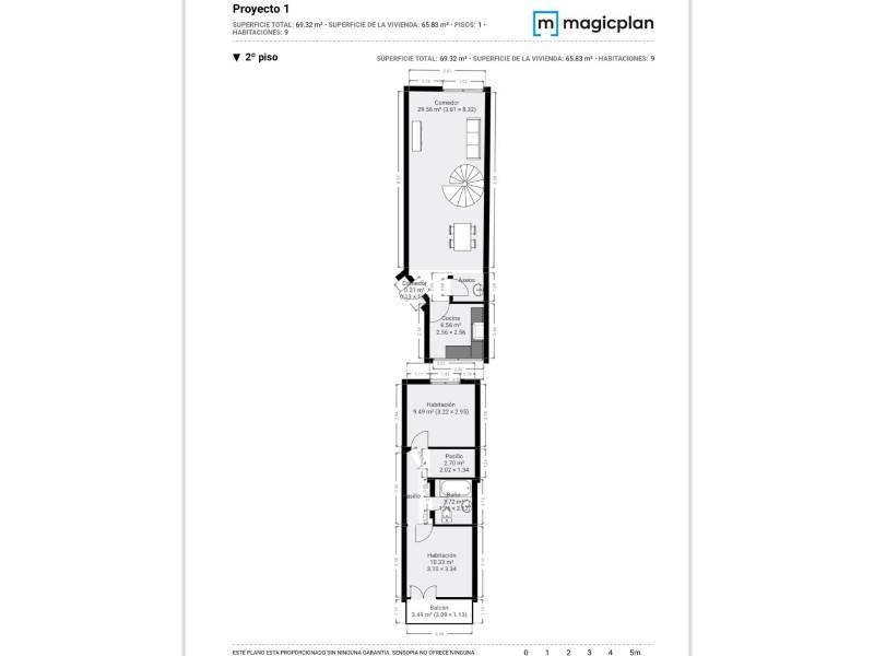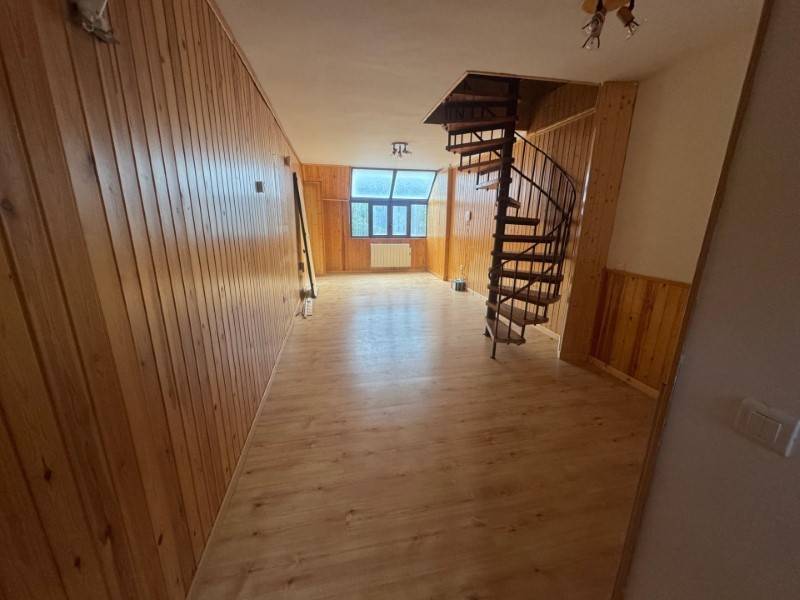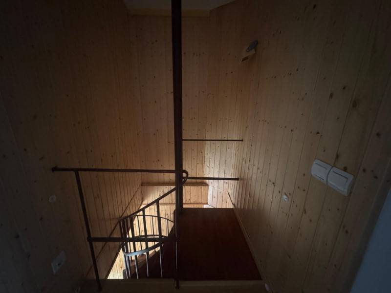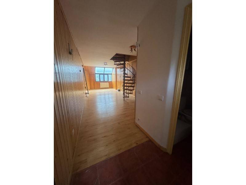 El piso se distribuye en dos plantas. En la planta principal encontrarás una cocina abierta, un aseo con plato de ducha y un amplio comedor con paredes forradas en madera, que aportan calidez y un ambiente acogedor al espacio.