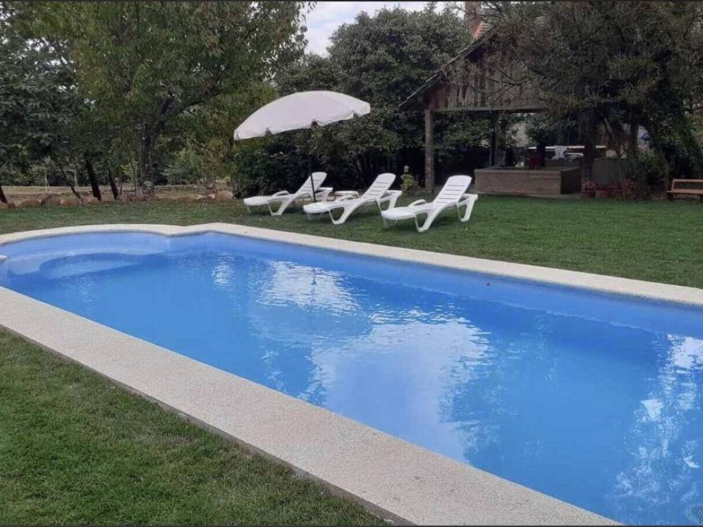 tiene dos piscinas, una para cada casa.
