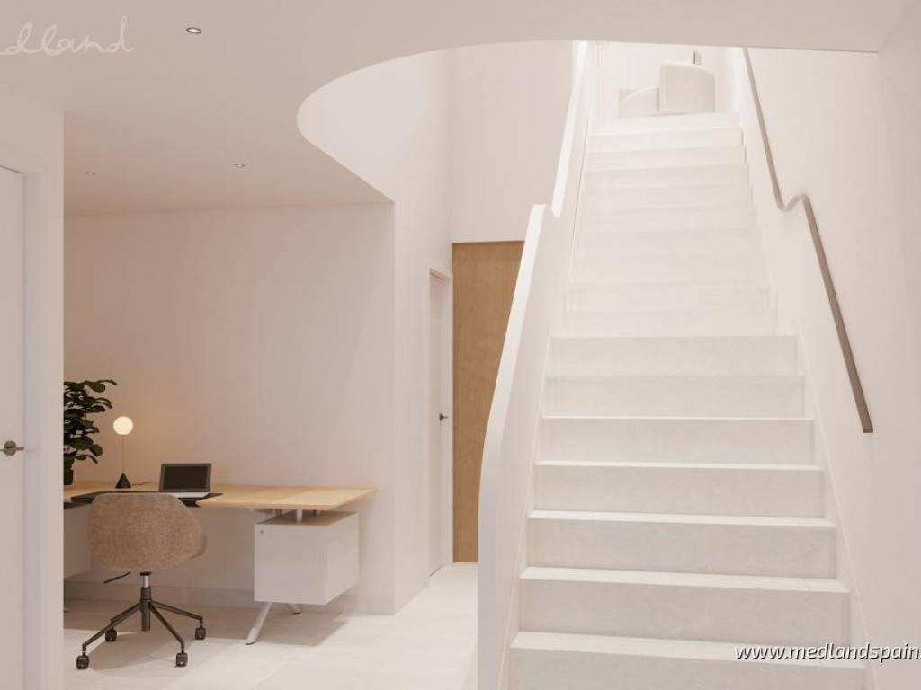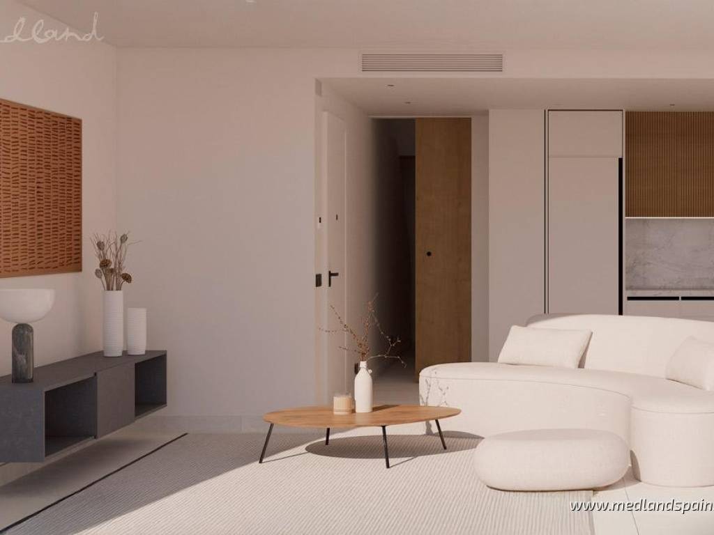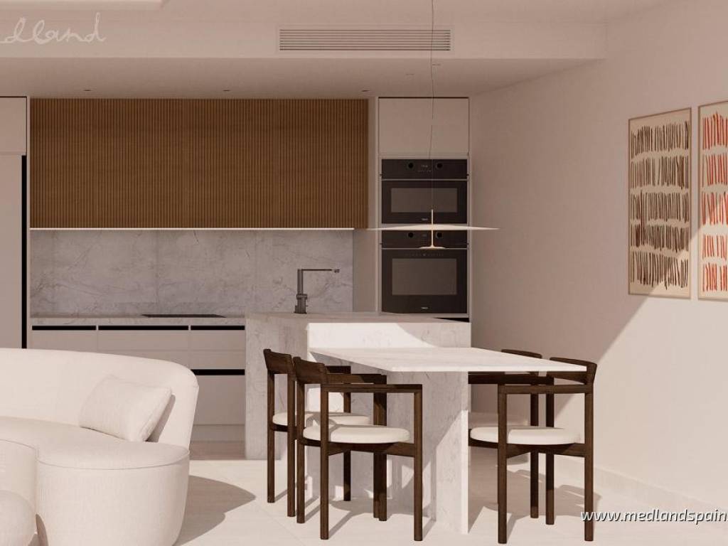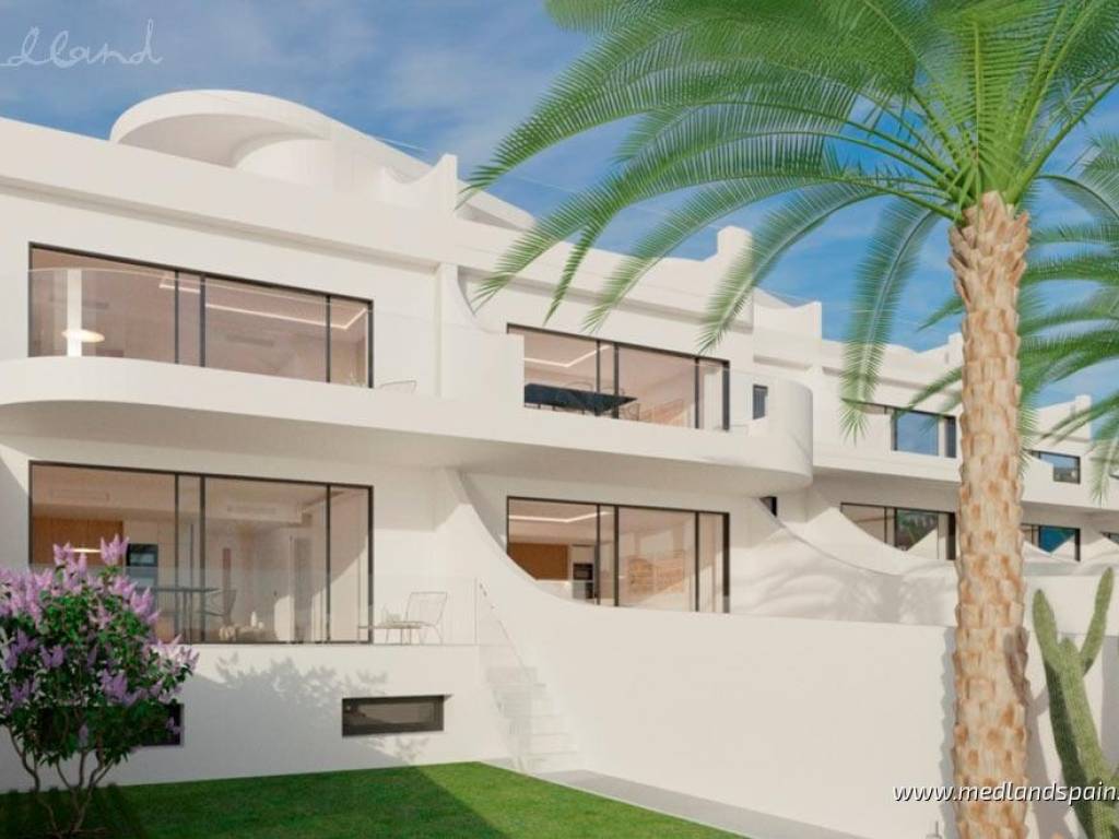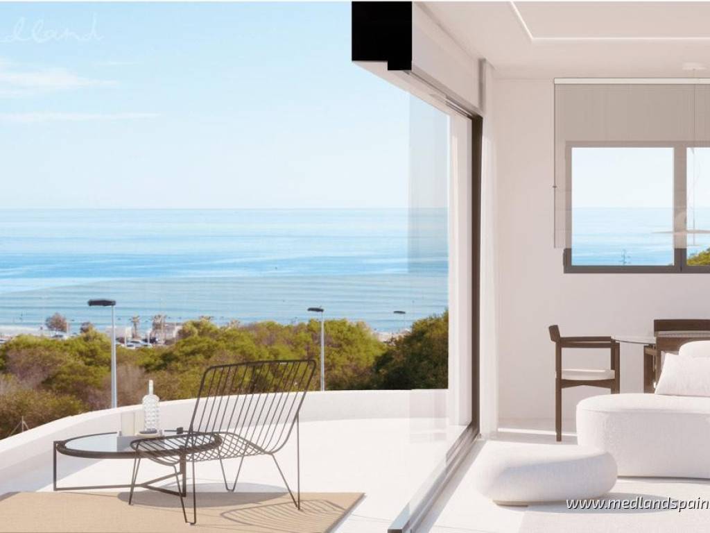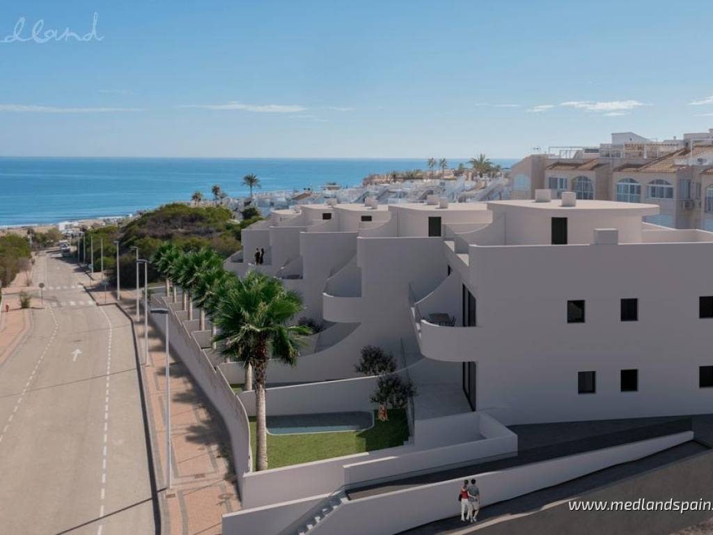 Modern apartment complex, less than 300m from the beach in La Mata. This is a quiet and exclusive residential area on the outskirts of Torrevieja, with a complete selection of daily amenities close by. The national road is only a short drive from the complex allowing for quick and easy access to other areas of the Costa Blanca, as well as a variety of sports activities like the municipal sports centre, golf courses, tennis and padel courts, and walking and cycling routes in the La Mata Natural Park. Alicante airport is only 40 minutes away by car.The complex comprises apartments with 2 bedrooms and 2 bathrooms, available on the ground floor with a private garden, or on the top floor with a private solarium. All models present an open plan living area, combining the lounge, dining area and kitchen in a single space, with large windows that open onto a terrace with exceptional sea views. The ground floor models also have a small basement, ideal for storage. The top floor models have a multipurpose space under the internal stairs to the solarium, ideal as a home work-station, as well as an enclosed area on the solarium. The spacious solarium is perfect for enjoying the more than 300 days of sunshine a year.The community area includes an infinity pool and a chill-out area with sea views. Residents have a parking space in the underground parking garage. Depending on the stage of construction, and for an additional price, it is possible to customise the apartments, ie. installing a pool in the garden or adding an extra bedroom in the ground floor models, or installing a summer kitchen on the solarium.