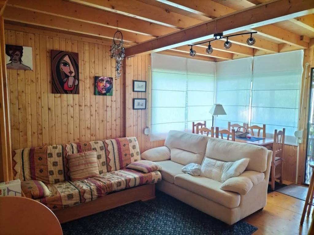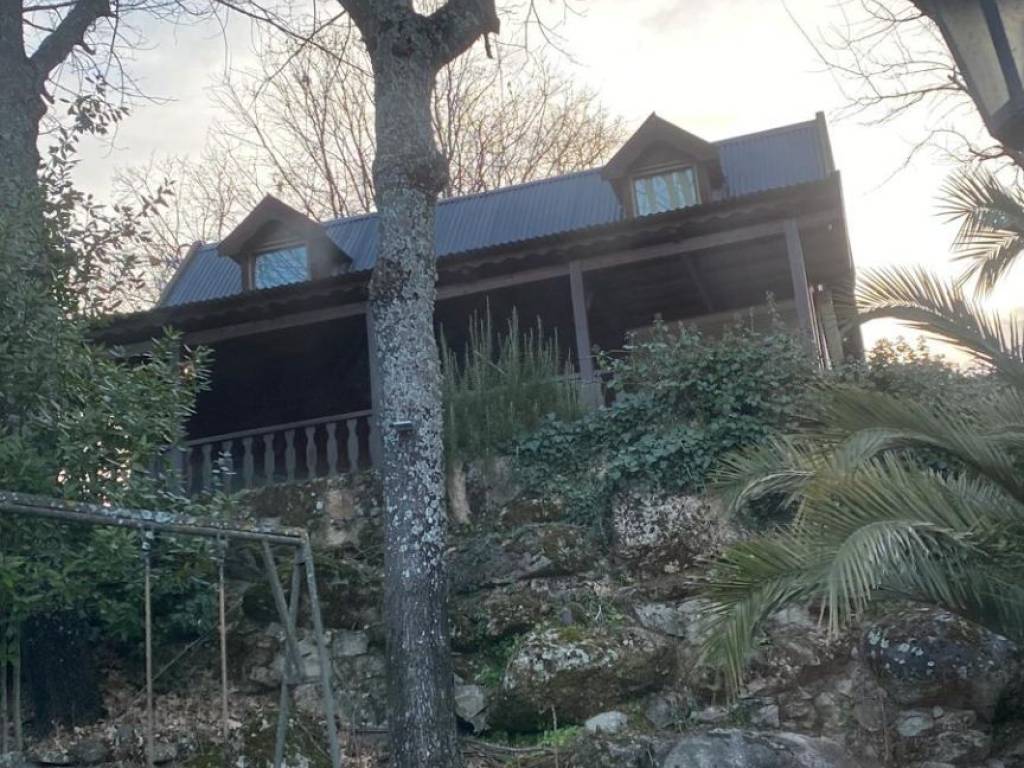 Bonita casa de madera, con dos plantas, tres habitaciones, comedor con cocina americana (amueblada) baño con ducha, amplia terraza con unas vistas espectaculares, barbacoa, árboles, palmeras, caseta de herramientas, etc., todo ello ubicado en una preciosa parcela de 900 m2 entre Mombeltrán y Arenas de San Pedro, en el valle del Tiétar, en Gredos (Ávila)