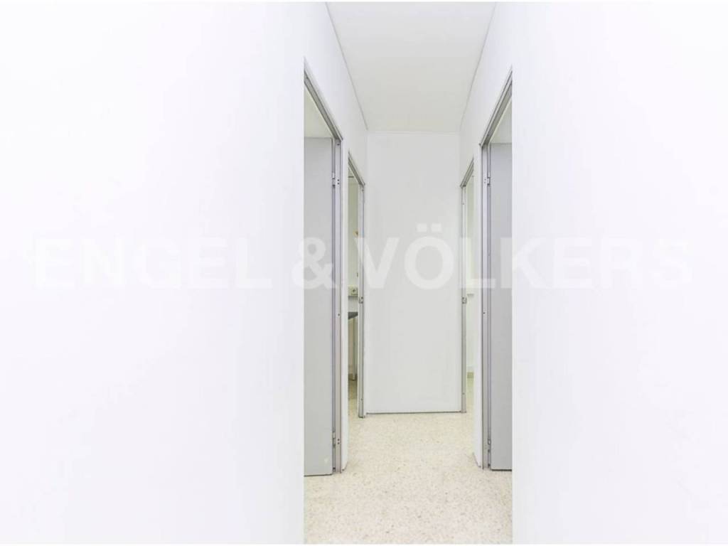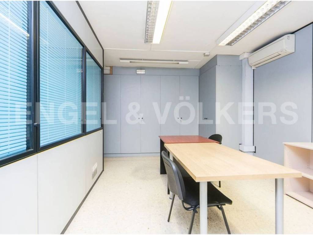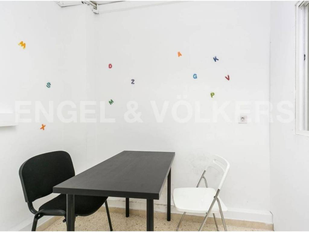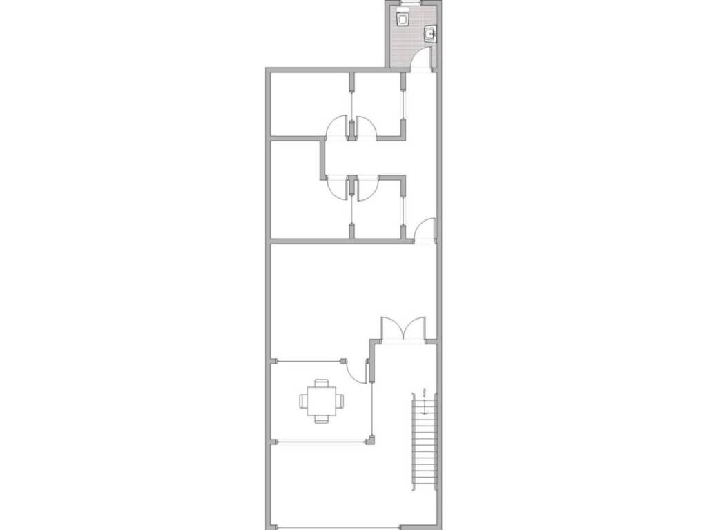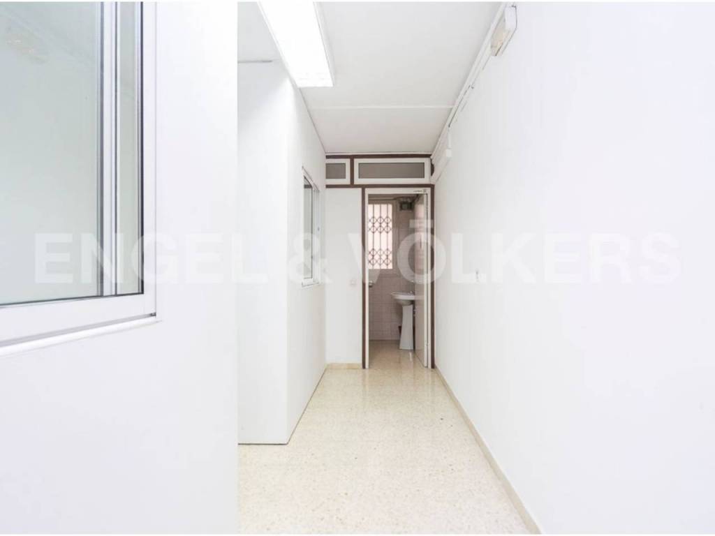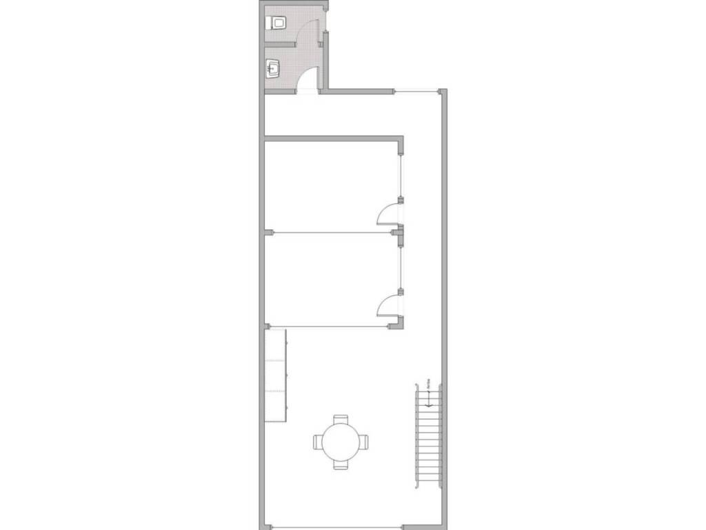 Nada más entrar se encuentra un primer espacio de recepción con sala de espera a doble altura. Si seguimos avanzando nos encontramos a mano derecha con la escalera que conecta con el piso superior. Si se continua de frente en la misma planta, se llega a una primera sala polivalente, totalmente diáfana y de buen tamaño desde la cual se accede a la primera de las salas/despachos de que dispone la propiedad. De la sala polivalente y mediante un pasadizo se llega a otro espacio donde encontramos 4 salas más, esta vez más pequeñas. Al fondo del pasadizo se encuentra un baño de dos piezas, el cual dispone de ventana de ventilación al patio interior.