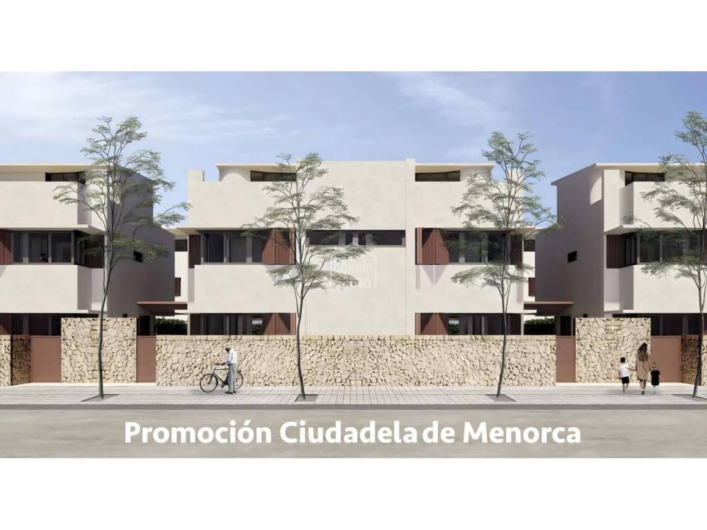 Interesting new development with a communal pool, located in a residential area just ten minutes from the town centre and next to Sa Platja Gran. The project begins with a first phase of 12 semi-detached homes, expected to be delivered by the end of the 2025 season, followed by a second phase with 24 additional units. The development is well connected by road, just five minutes from the commercial port of Ciutadella, and surrounded by all essential services: schools, supermarkets, public swimming pool, and public transport. Main goal: to offer high-quality, innovative and comfortable homes, with a strong commitment to sustainable construction, environmental respect, and energy efficiency. The homes are designed to maximize comfort and meet modern needs, with a focus on new ideas and smart solutions. Customer satisfaction and well-being are at the heart of the project. We understand that buying a home is a major life project, and we're here to support our clients every step of the way. Personalisation is possible during the construction phase buyers can choose colours and finishes. Timeline: Construction started: March 2024 Estimated delivery: Q4 2025 Payment terms: 6,000 + VAT upon reservation 10% + VAT upon signing the contract (with a mutually agreed timeline) Remaining amount + VAT upon delivery of the property NOTE: As this is a new-build property, purchase taxes include 10% VAT + 1.5% stamp duty (AJD), plus notary and land registry fees. This house of approx. 290m, features four bedrooms, three bathrooms, a guest cloakroom, a spacious living-dining room, and a kitchen that opens onto a generous private garden of around 100m. Additionally, there is a laundry room and storage space. Two additional rooms with flexible uses (such as bedrooms or a games room) complete the layout. Lift pre-installationThe rooftop boasts two large terraces. In the basement, there is a garage and a gym.There is a communal pool. During the construction period, purchasers will have the option to customise their homes by selecting colours and finishes.