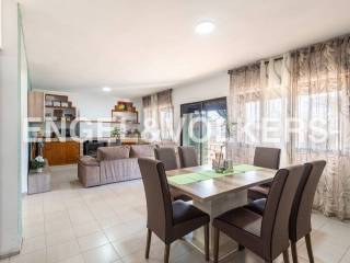 Bonito chalet a pocos metros del mar Mediterráneo. La propiedad de 213m² y con 833m² de terreno se distribuye en dos cómodas plantas comunicadas tanto por el exterior como por el interior. La planta inferior es la principal, para el uso diario, con un acogedor salón comedor con chimenea y con acceso a la amplia terraza, una bonita y práctica cocina . La totalidad de esta planta es exterior con excelentes vistas y tiene muy buena luminosidad. La primera planta cuenta con 3 habitaciones, todas exteriores y 1 baño. En próxima planta nos encontramos el dormitorio principal con su baño en suite y una terraza con vistas al jardín Aparte hay garaje para dos coches, galería y trastero Se trata de un inmueble elegante por su sencillez, calidez y dinamismo, por su buena calidad en la obra y por su cercanía al mar Mediterráneo.