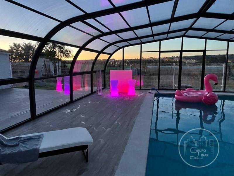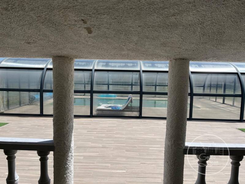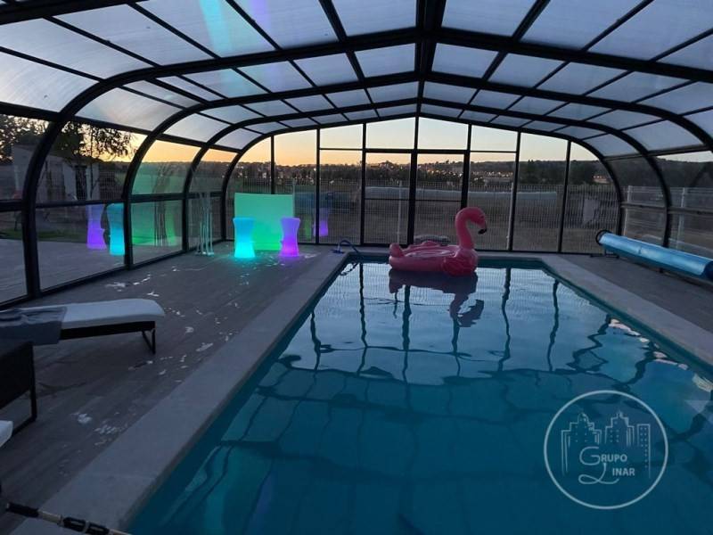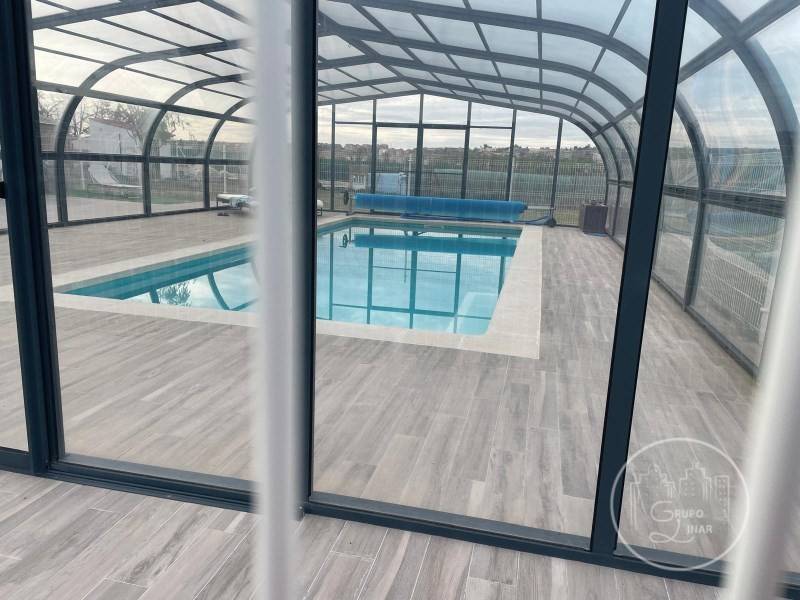 Cuenta con una acogedora casa de 50 m con porche donde relajarte a la sombra, perfecta para fines de semana o escapadas. Además, dispone de una piscina cubierta, ideal para disfrutar del baño durante más meses al año y protegerla de la suciedad o el mal tiempo.