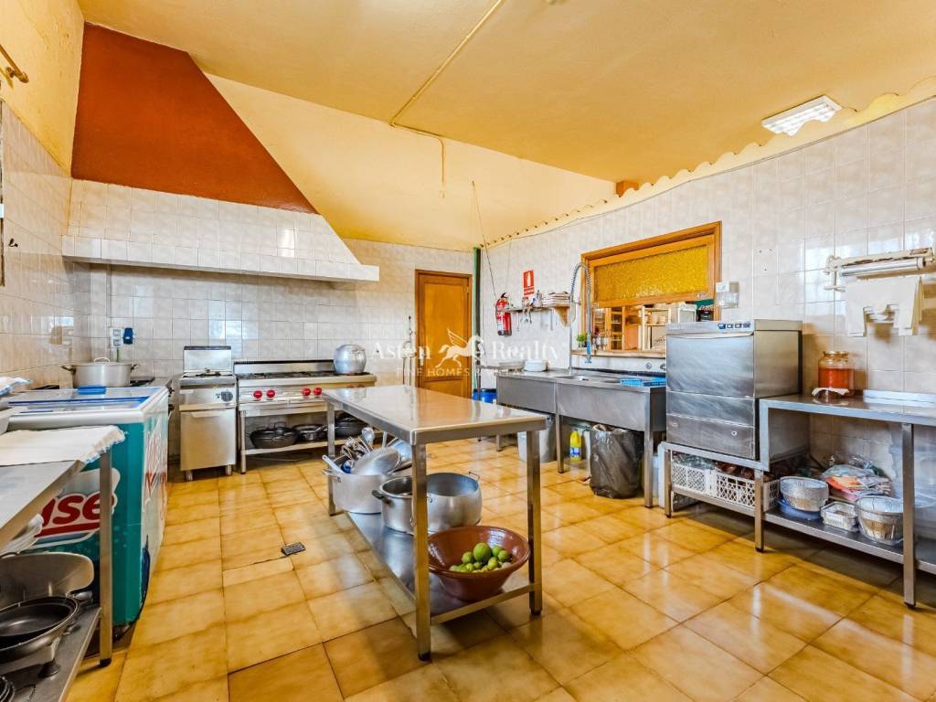Detras hay una gran cocina, sala de frio, almacen, barbacoa y un baño completo para los empleados.