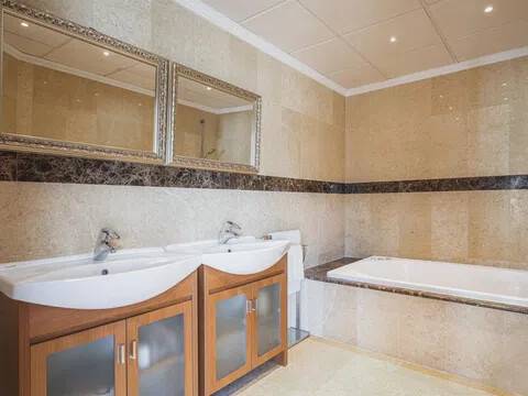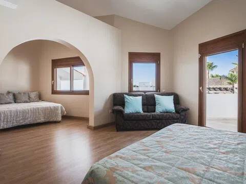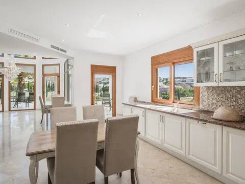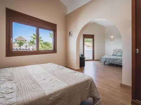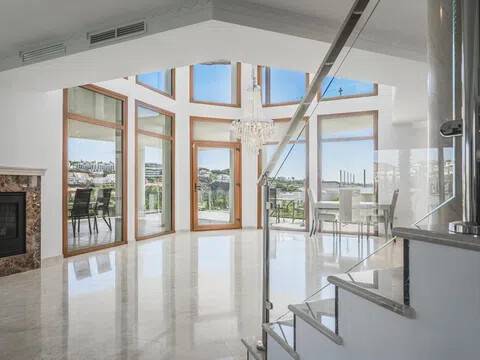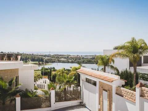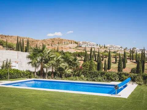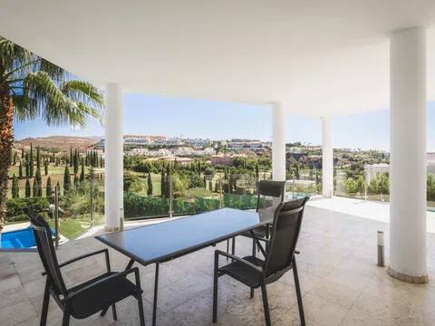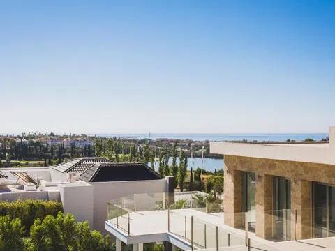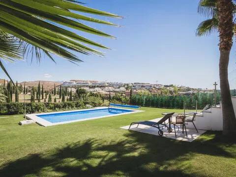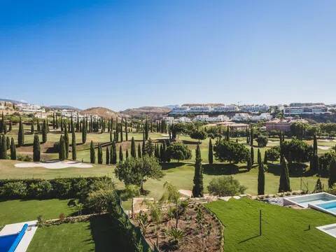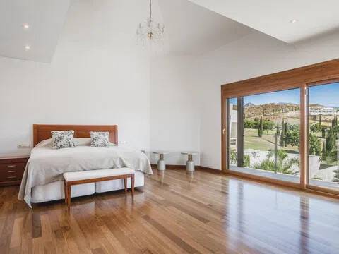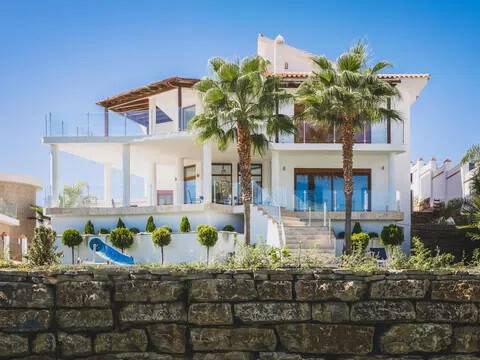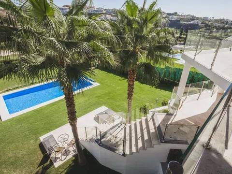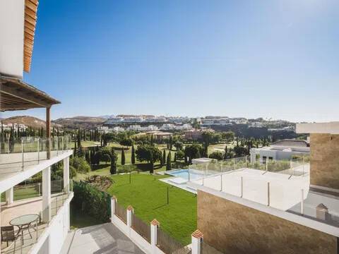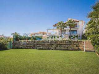 Hermosa villa en primera línea de golf situada en un barrio tranquilo de Los Flamingos, construida junto al mundialmente famoso Hotel Villa Padierna de 5 estrellas. Esta propiedad con orientación este y sureste disfruta de fantásticas vistas al golf y al mar y es de nueva construcción con los más altos estándares, que comprende, en el nivel de entrada: vestíbulo que conduce a una sala de estar/comedor combinada con techos de doble altura con chimenea de gas y con acceso a una terraza cubierta. terraza; dormitorio en suite; cocina equipada con terraza exterior; aseo de invitados; guardarropa. Arriba: 3 dormitorios dobles, 2 de los cuales son posibles dormitorios principales con baños en suite y acceso a la soleada terraza superior abierta. El tercer dormitorio está en la parte trasera de la propiedad y tiene su propia terraza privada. Nivel inferior: área para una pequeña sala de estar acogedora; sala separada para cine en casa; amplio garaje para 3 coches; 2 trasteros independientes. Las características incluyen: calefacción por suelo radiante en los baños, doble acristalamiento, persianas eléctricas y suelos de mármol en todas partes. ¡Una acogedora casa familiar para vivir todo el año!