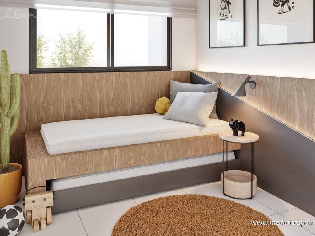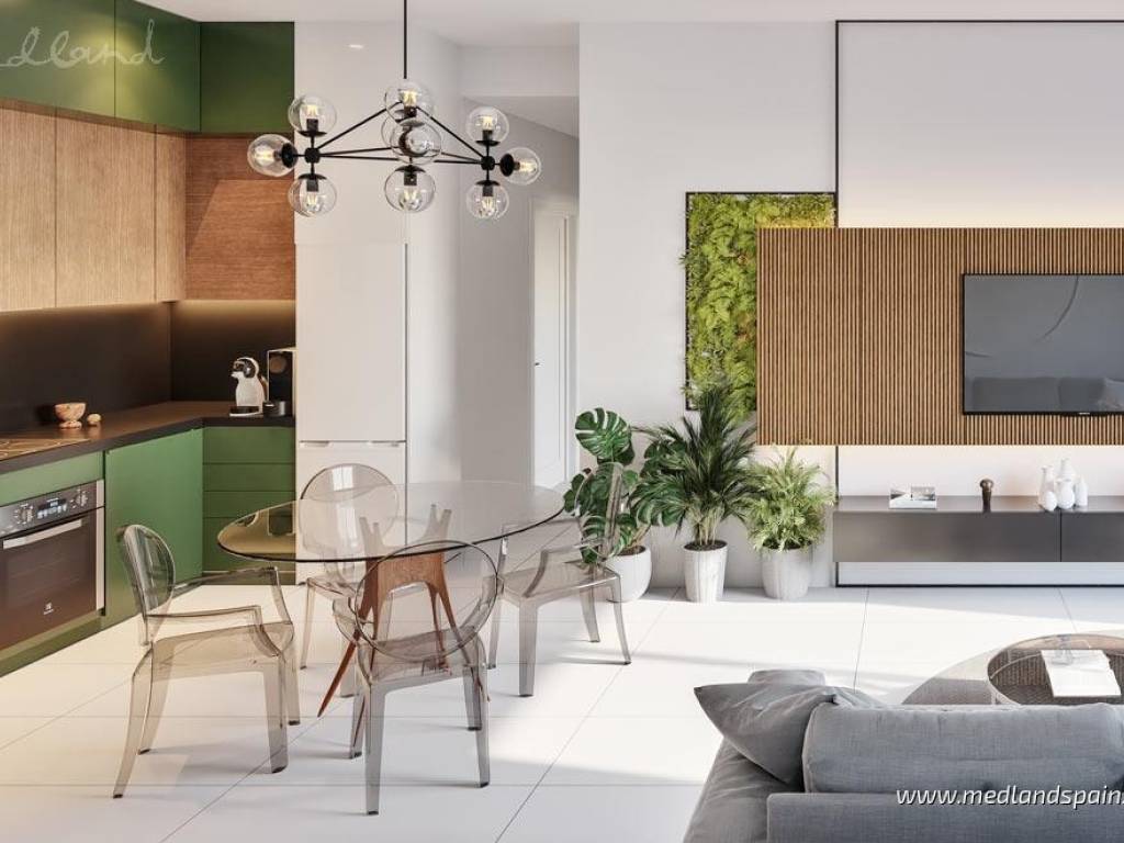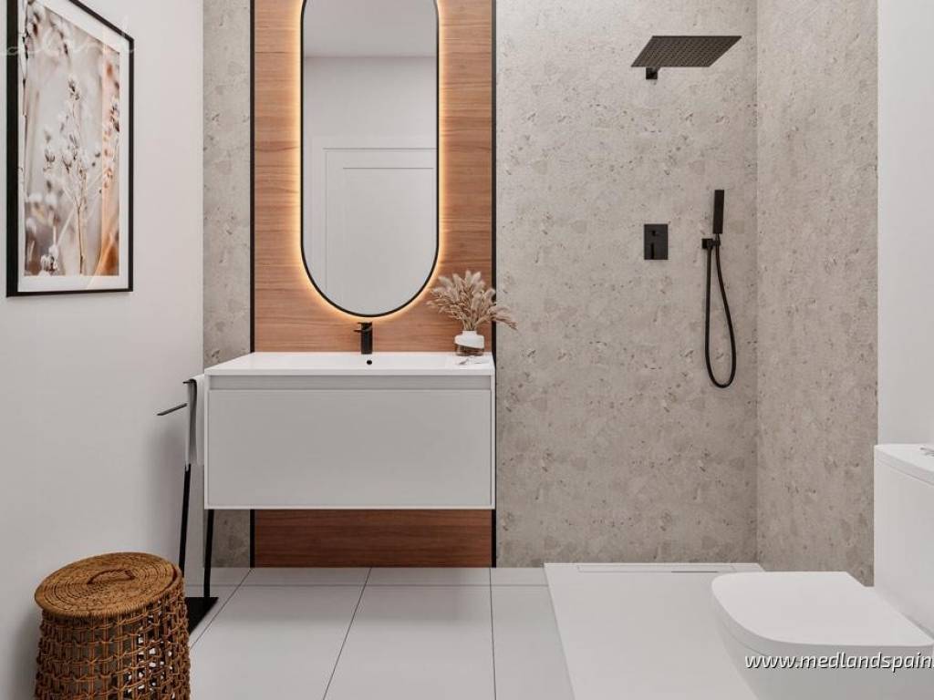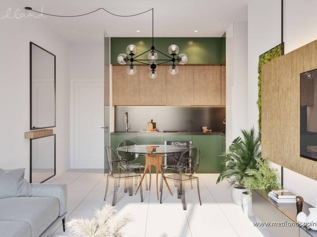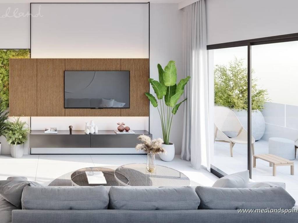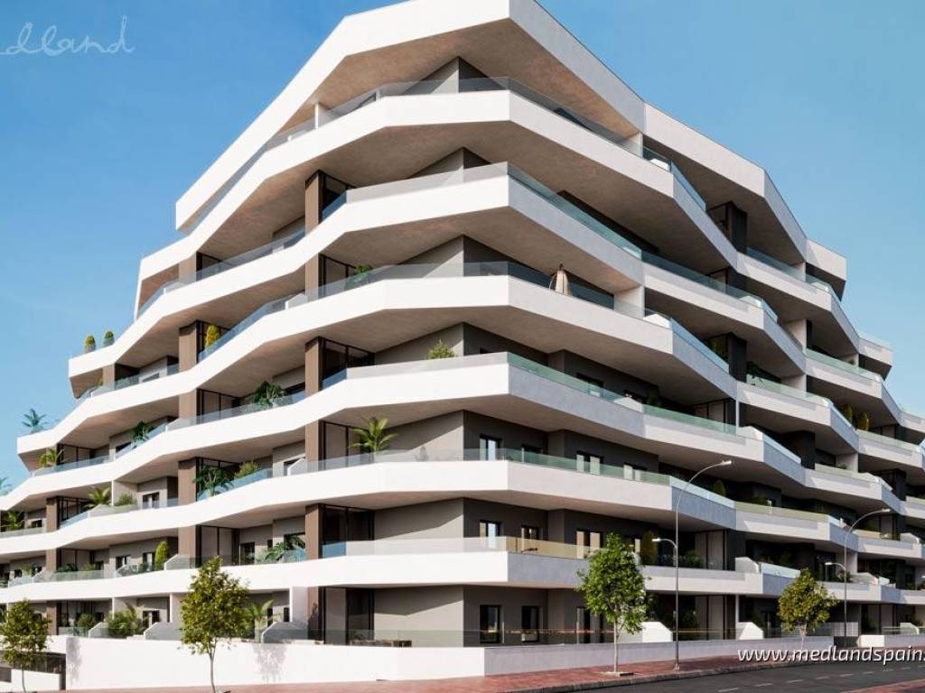 New apartment complex in a residential area of San Miguel de Salinas, only 15 minutes' drive from the Blue Flag Beaches ofthe Orihuela Costa. The area is also surrounded by some of the most prestigious golf courses, likeLas Colinas Golf, Villamartín, Real Club de Golf Campoamor y Las Ramblas Golf. The town itself providesall the necessary daily services, with an excellent road network, connecting it to the region's main tourist areas, like Torrevieja and Orihuela Costa, as well as the airports of Alicante and Murcia, which are both only 50 minutes away.This impressive apartment complex comprises apartments with 2 or 3 bedrooms and 2 bathrooms. All apartments present an open plan living area, combining the kitchen, dining area and lounge in a single space, with windows that open onto the terrace. Some apartments are available with a large terrace of between 60m2 to 140m2. Depending on the location within the complex, some apartments enjoy views of the central community area or the surrounding landscape. Each apartment includes pre-installation for air conditioning, fitted wardrobes, and a parking space. For an extra price, it is possible to purchase a storage unit.This is a closed complex, ensuring residents can enjoy the communal facilities in a secure and private environment. These fantastic facilities include a large pool for adults and a splash pool for children, bio-healthy gym equipment, childrens playground, and outdoor or underground parking spaces.