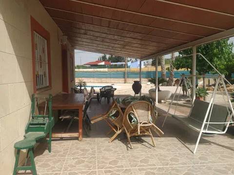 Chalet de campo de unos 110 m2, sobre una parcela de 1.350 m2, con piscina, totalmente vallado con muro perimetral, en una de las zonas más bonitas de la comarca, con grandes zonas verdes. Ideal para vivir y disfrutar de la naturaleza en una zona muy bonita entre Santomera y Fortuna, y todo ello a solo 20 minutos de Murcia capital y sus centros comerciales. Situada a tan sólo 5 minutos de Santomera, 5 minutos de Fortuna, 5 minutos de Orihuela y Abanilla, a 40 minutos del aeropuerto de Alicante y 30 minutos de San Javier, 15 minutos de Murcia Capital y a tan sólo 5 minutos de las carreteras más importantes, la A7, y la N340 DISTRIBUCION: 3 dormitorios, 1 baño completo, salón con chimenea y aire acondicionado, cocina independiente, Porche cubierto, trastero, parking para coches, amueblada y todo en un estilo rústico muy bonito, toda la parcela está muy bonita con los jardines y adoquines en todos los paseos.