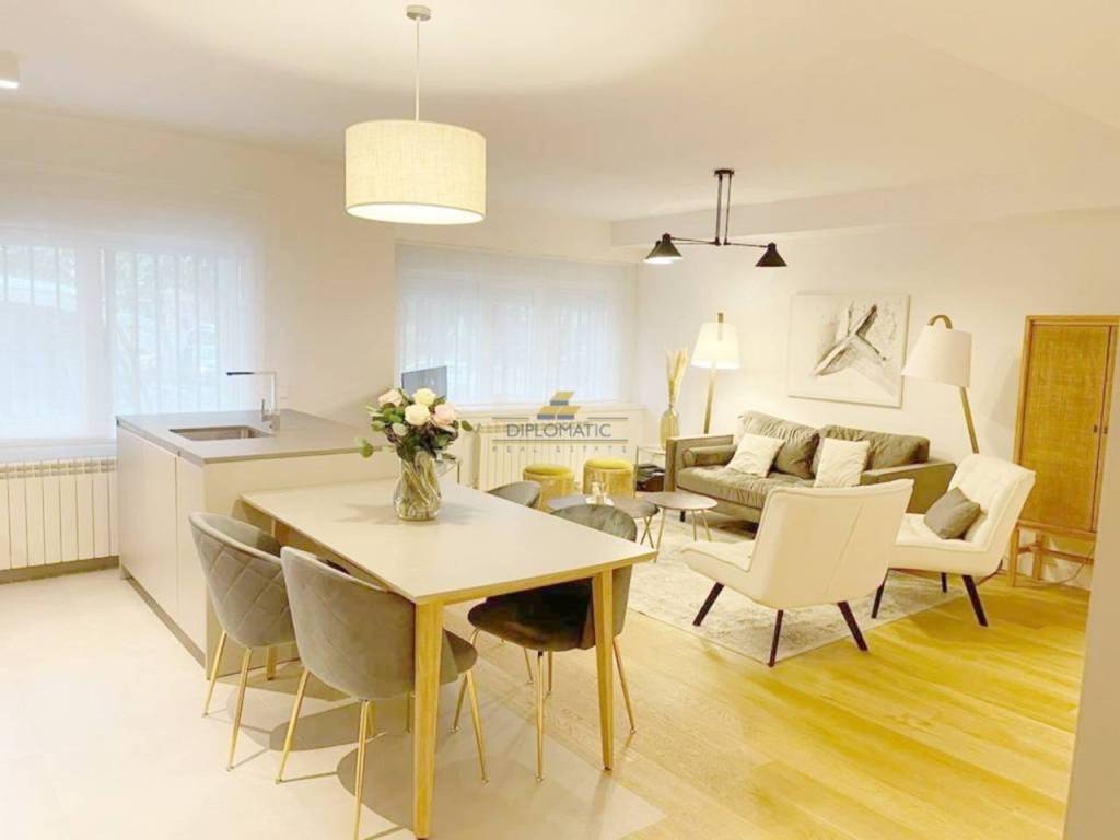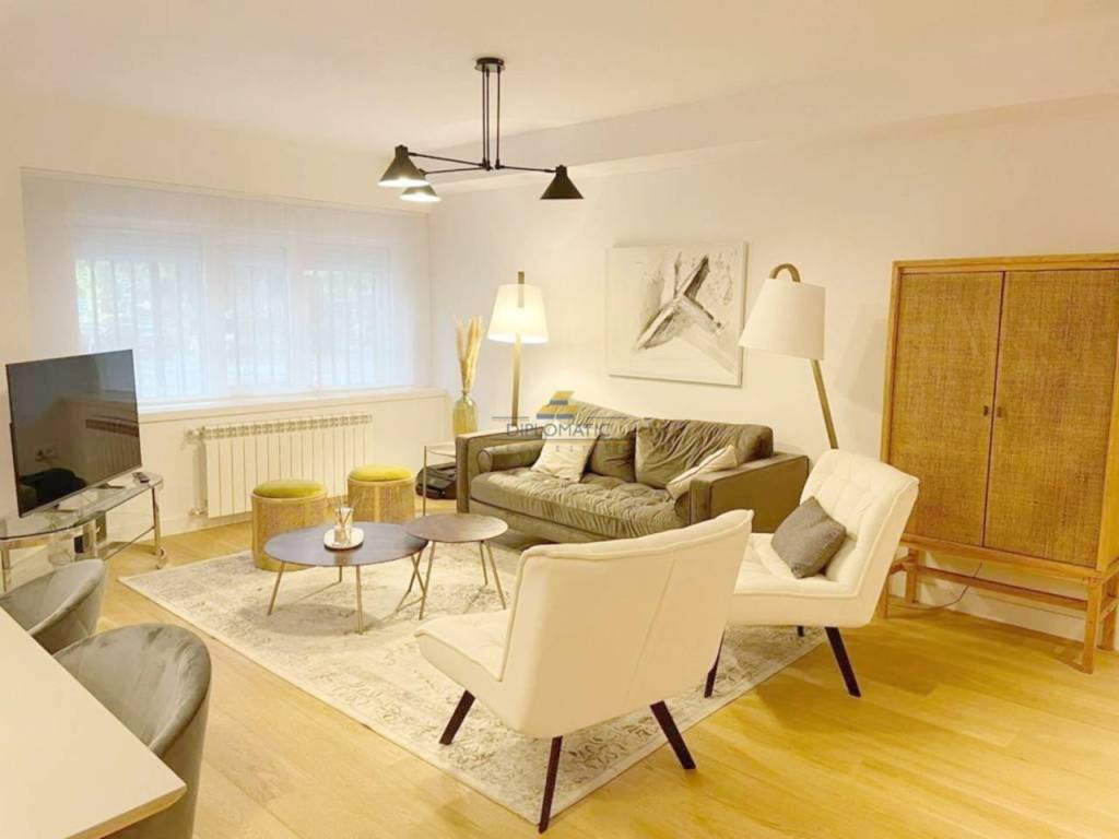 Diplomatic Real Estate offers an apartment in El Viso near Santiago Bernabeu and Nuevos Ministerios. Large living room of 35 m2, with large window and entrance hall. 2 bedrooms with double bed and en-suite bathrooms. Guest toilet. Modern kitchen integrated into the living room and equipped with high-end appliances. 8 built-in closets. 2 elevators. Central heating and air conditioning. The property has a music system. Located in an area with a wide range of leisure options, schools, shops, and parks in the surrounding area. We look forward to your call, Diplomatic Real Estate with over 25 years in the real estate sector and a wide portfolio of luxury homes, premises, offices, and buildings offers comprehensive advice to its clients in both rental and buying and selling of properties.