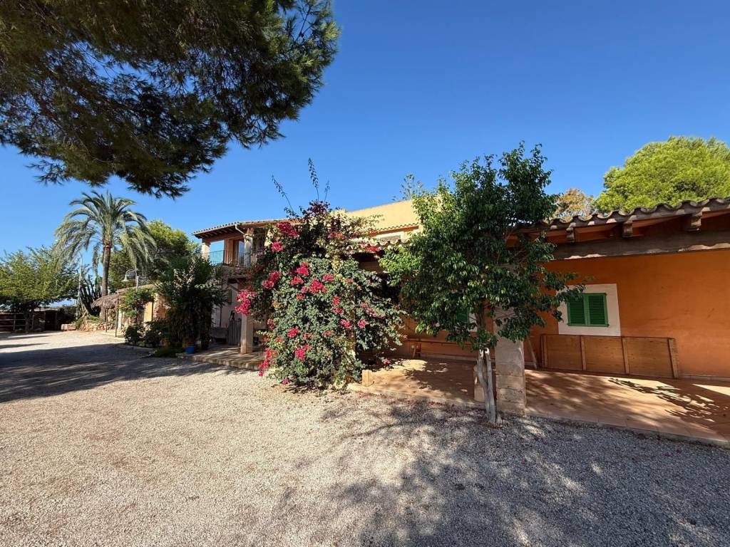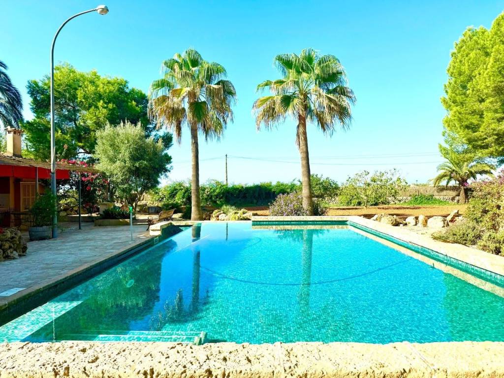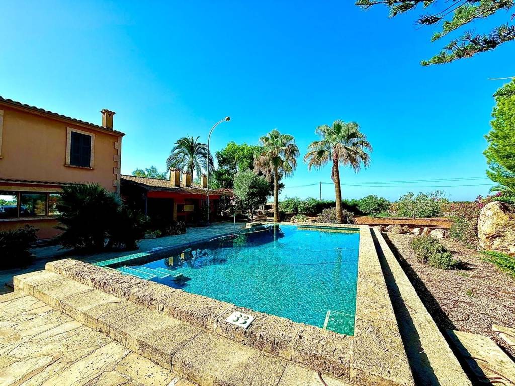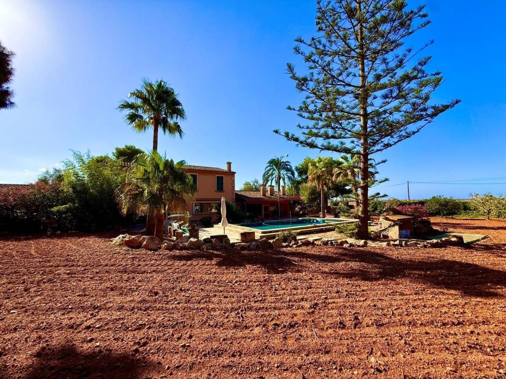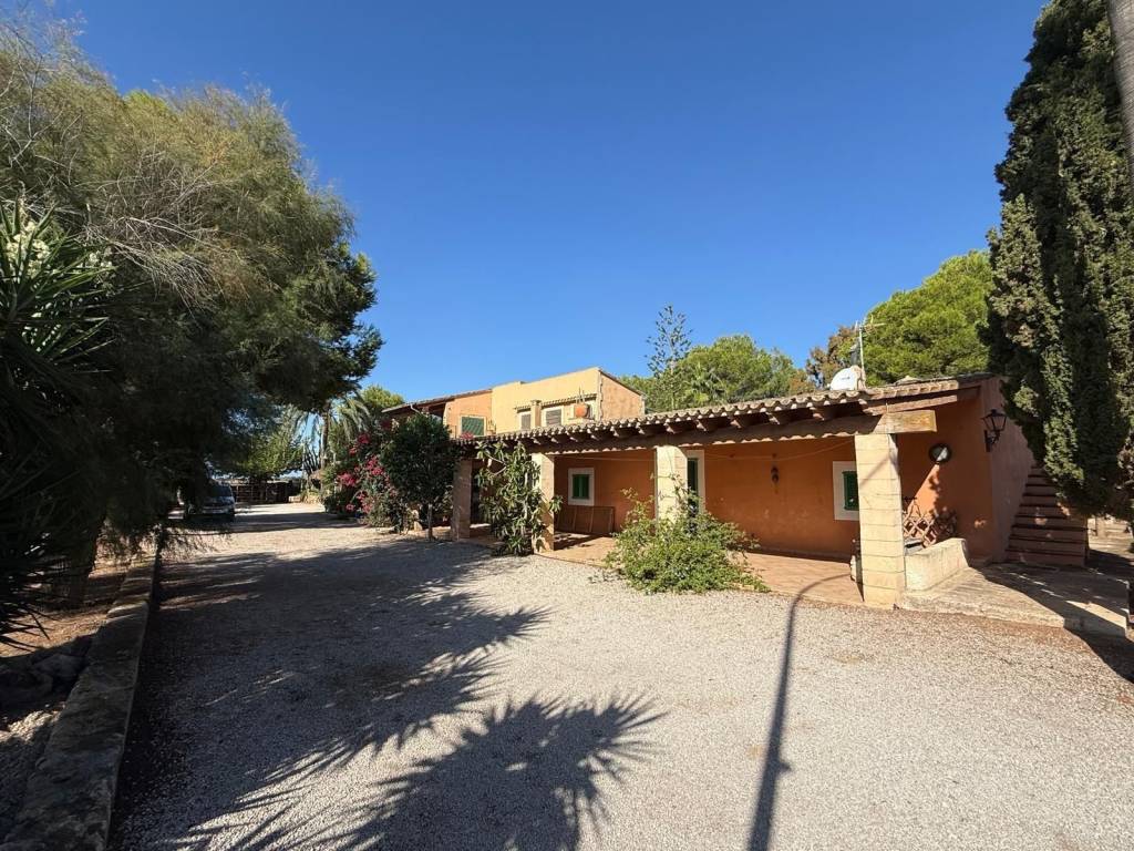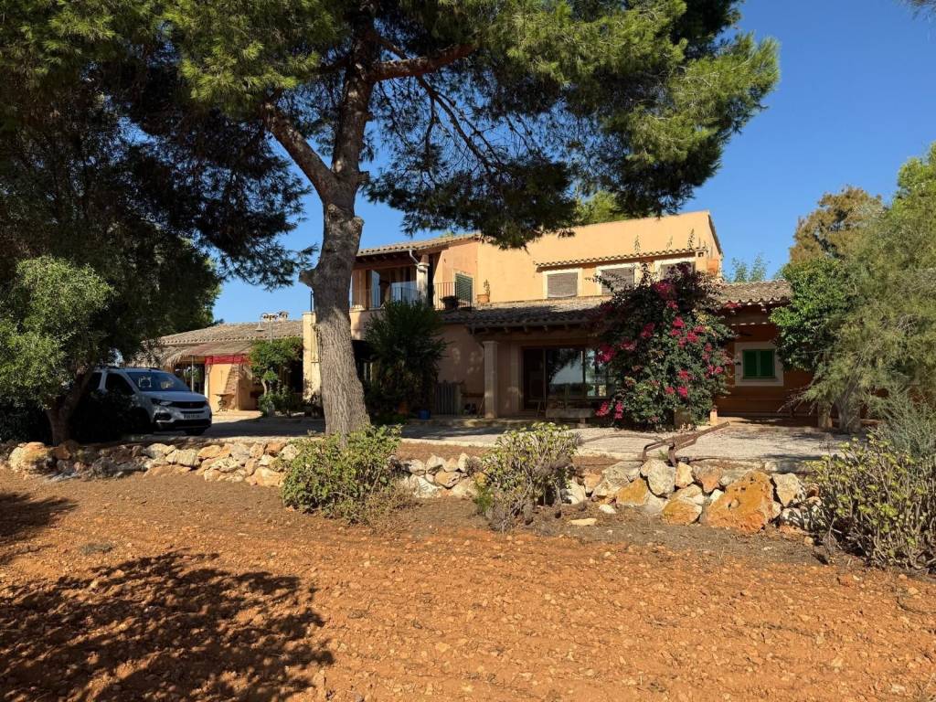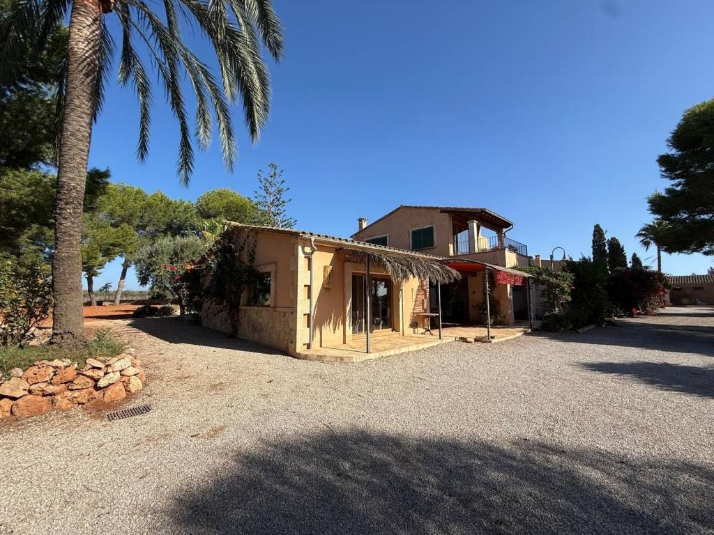 If you're looking for space and tranquility, this property is your opportunity!Located in a privileged natural setting, just minutes from Es Trenc beach.The property stands out for its main house, several farm buildings, and a large workshop that can be used for various purposes.The home combines tradition and comfort.In the more traditional part, you'll find 4 bedrooms, 2 bathrooms, and an ideal work area.The more modern extension features the living-dining room with large windows, a fully equipped kitchen, outdoor porches, and the master bedroom with an en-suite bathroom and a terrace.It also features a typical Mallorcan wine cellar.Outside, you'll find the pool with a jacuzzi and barbecue area, plus an outdoor shower where you can cool off on summer nights.On the same land, you'll find several agricultural sheds. The land is perfect for farming, as it has 2 wells and irrigation throughout the property.Contact us and discover this magnificent property nestled in fields with great potential.