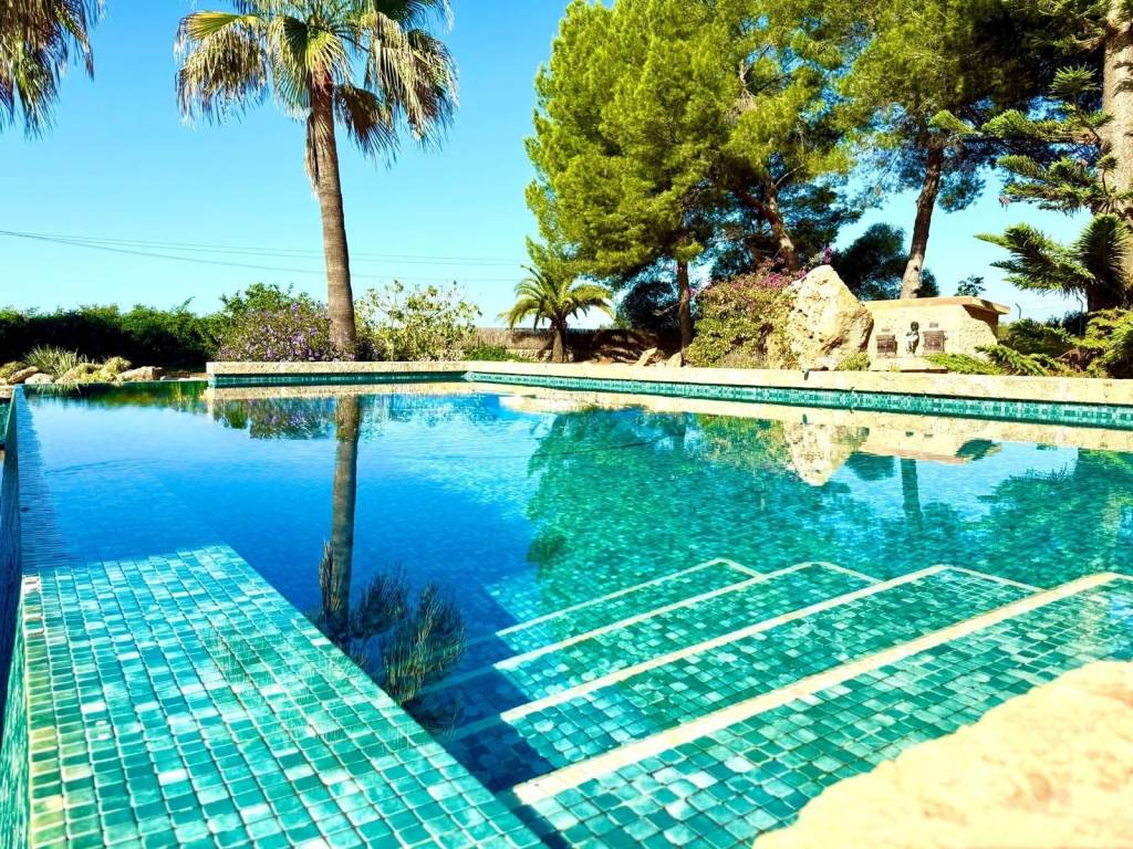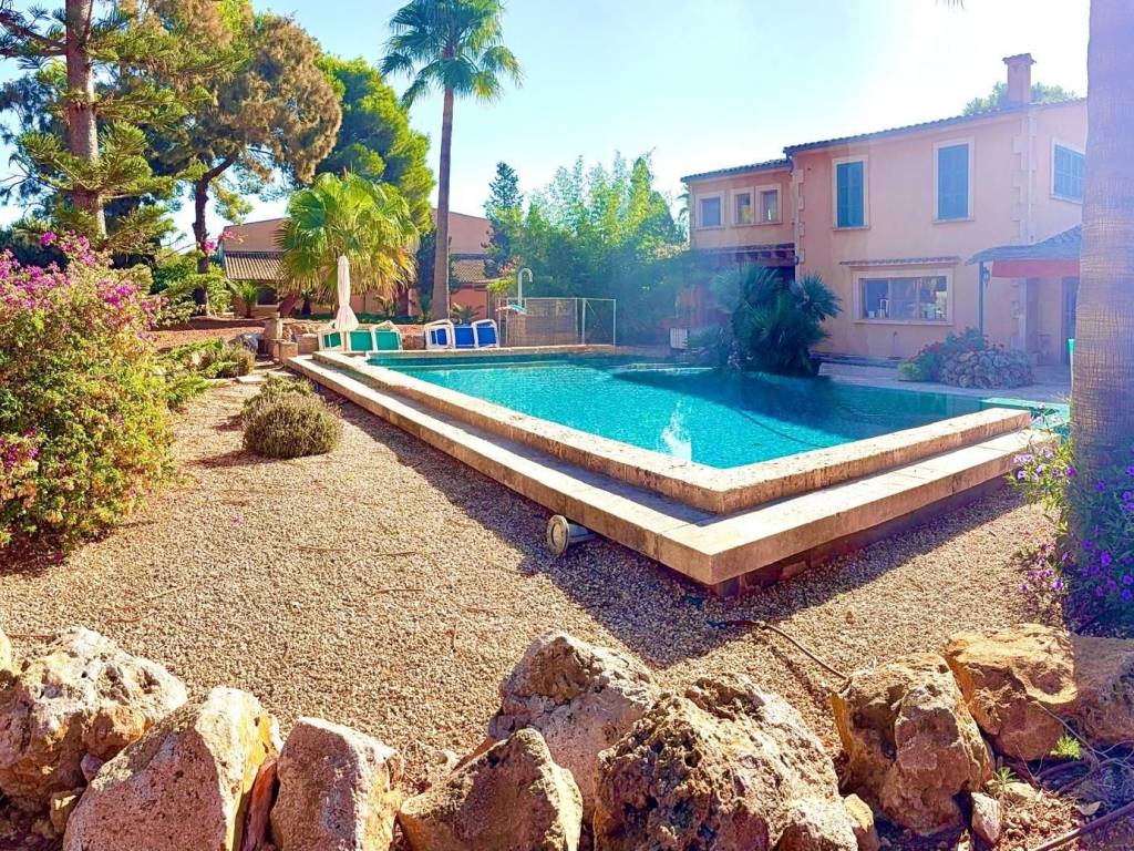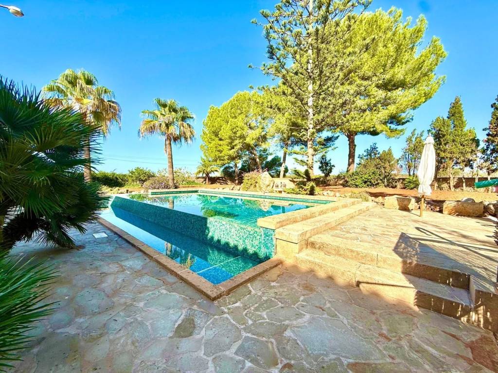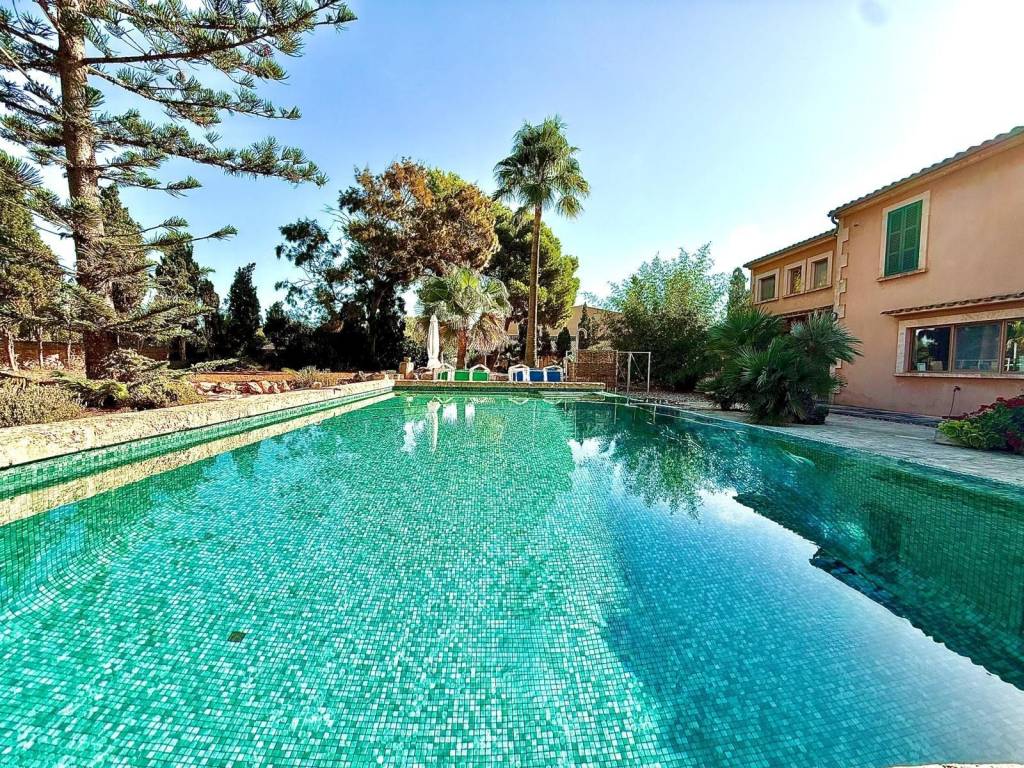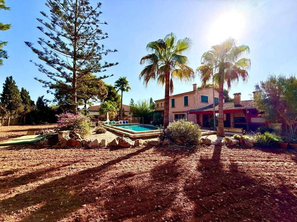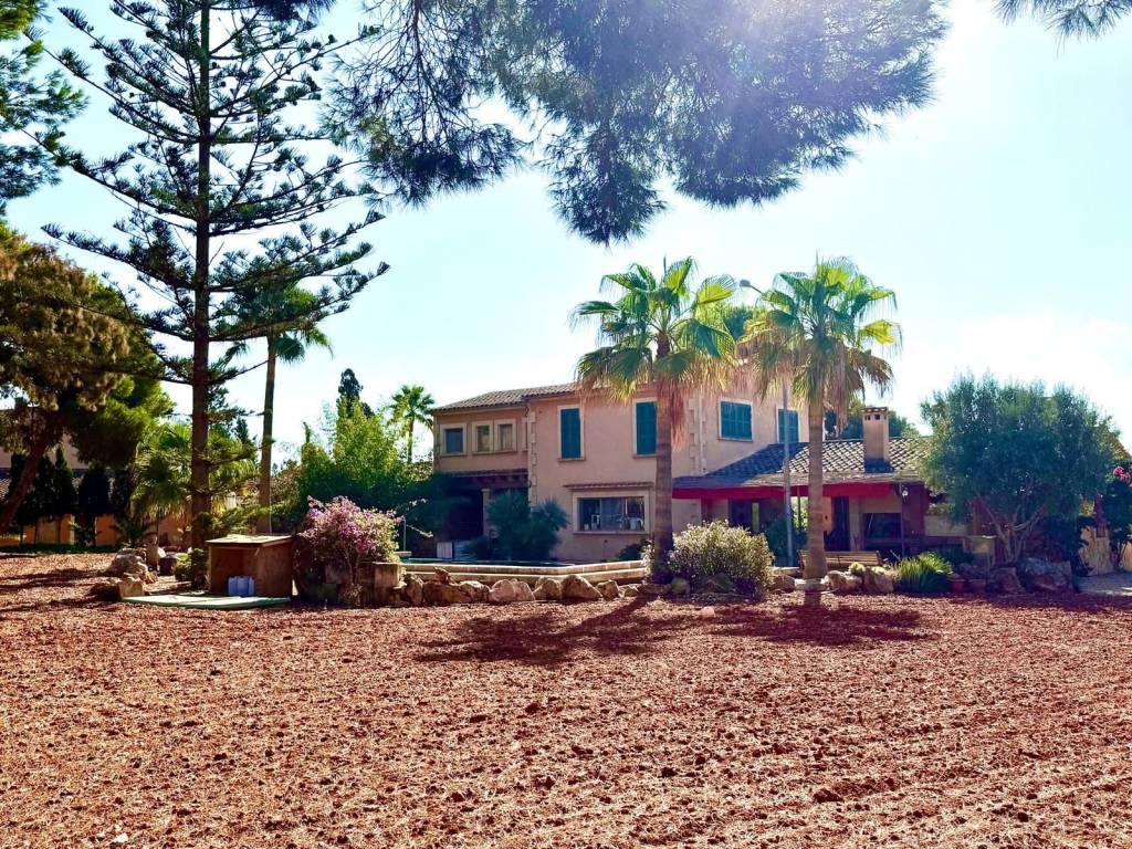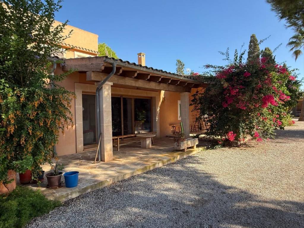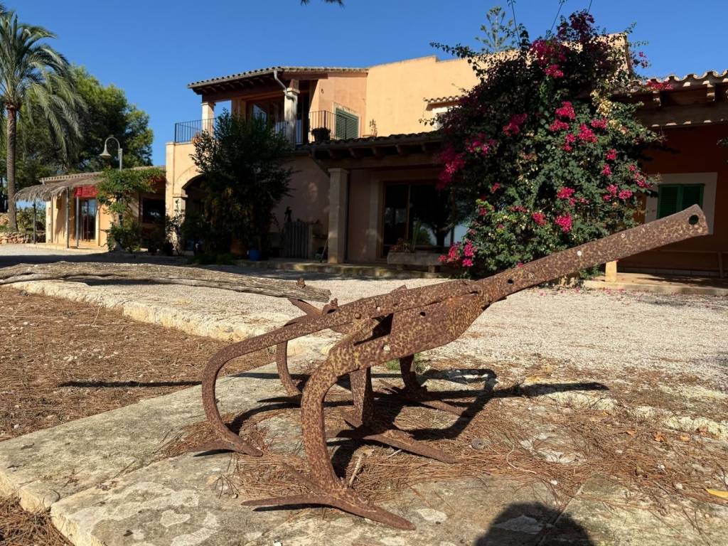 If you're looking for space and tranquility, this property is your opportunity!Located in a privileged natural setting, just minutes from Es Trenc beach.The property stands out for its main house, several farm buildings, and a large workshop that can be used for various purposes.The home combines tradition and comfort.In the more traditional part, you'll find 4 bedrooms, 2 bathrooms, and an ideal work area.The more modern extension features the living-dining room with large windows, a fully equipped kitchen, outdoor porches, and the master bedroom with an en-suite bathroom and a terrace.It also features a typical Mallorcan wine cellar.Outside, you'll find the pool with a jacuzzi and barbecue area, plus an outdoor shower where you can cool off on summer nights.On the same land, you'll find several agricultural sheds. The land is perfect for farming, as it has 2 wells and irrigation throughout the property.Contact us and discover this magnificent property nestled in fields with great potential.