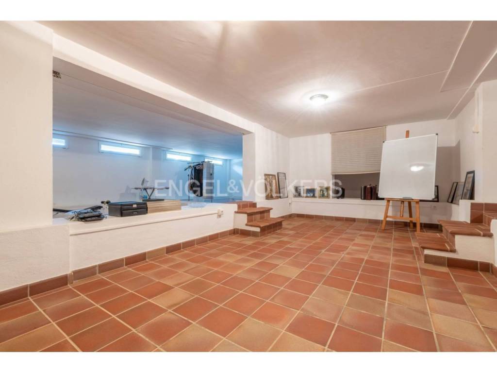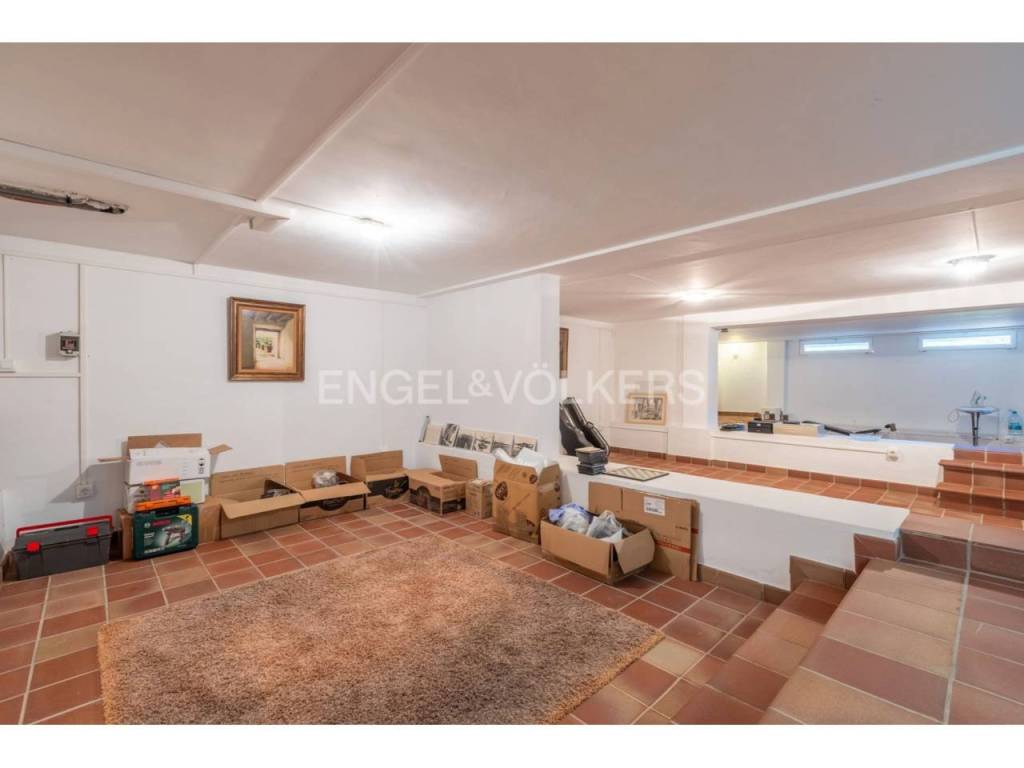 Zona de aparcamiento amplia para varios coches, con puerta mecanizada.